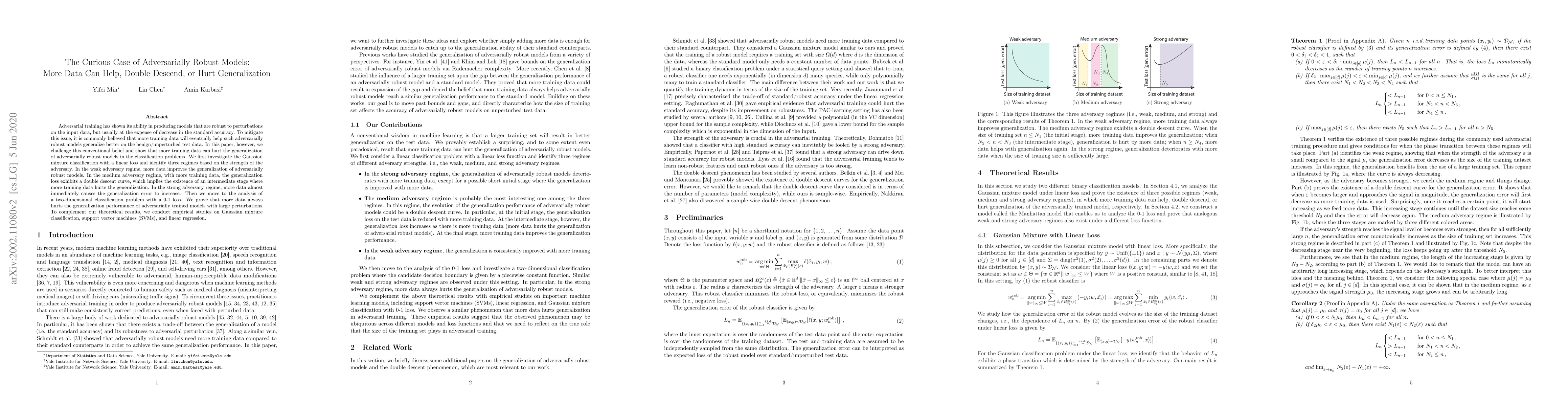 This paper challenges the belief that more data always improves the generalization of adversarially robust models, showing that it can actually hurt in certain conditions. The study identifies three regimes based on adversary strength, revealing that while more data helps in the weak adversary regime, it can cause a double descent in the medium regime and immediate degradation in the strong adversary regime.