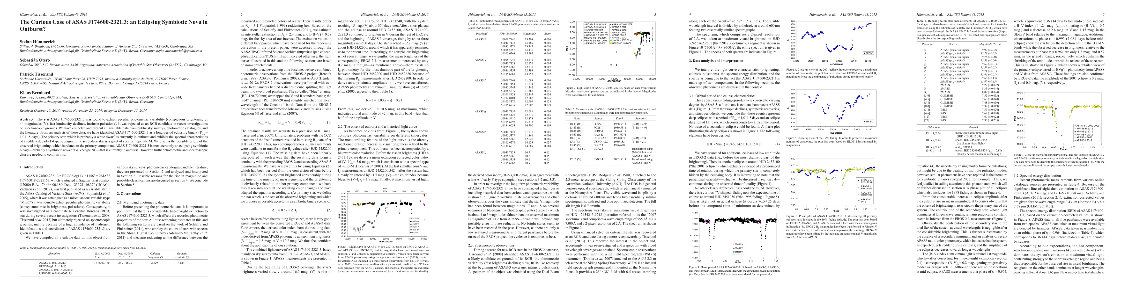 Researchers identified ASAS J174600-2321.3 as a long-period eclipsing binary in outburst with a possible symbiotic nova origin, requiring further data confirmation.