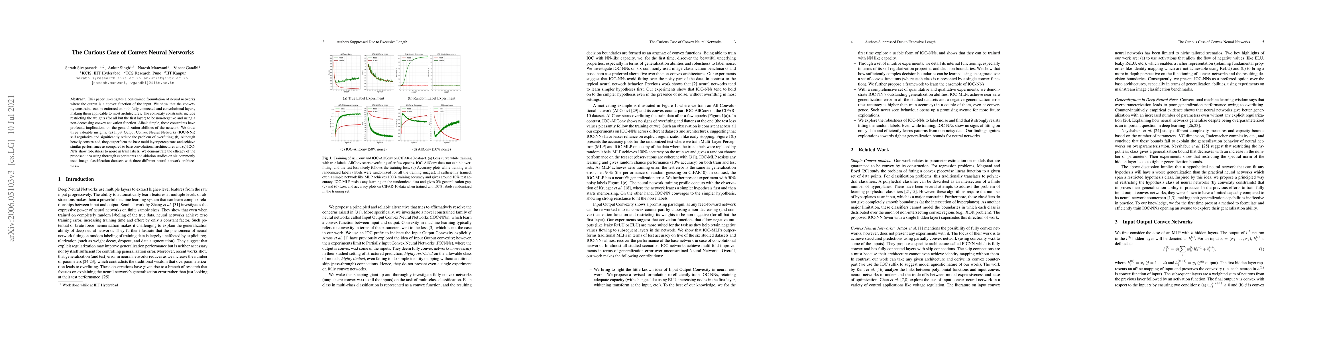 In this paper, we investigate a constrained formulation of neural networks where the output is a convex function of the input. We show that the convexity constraints can be enforced on both fully connected and convolutional layers, making them applicable to most architectures. The convexity constraints include restricting the weights (for all but the first layer) to be non-negative and using a non-decreasing convex activation function. Albeit simple, these constraints have profound implications on the generalization abilities of the network. We draw three valuable insights: (a) Input Output Convex Neural Networks (IOC-NNs) self regularize and reduce the problem of overfitting; (b) Although heavily constrained, they outperform the base multi layer perceptrons and achieve similar performance as compared to base convolutional architectures and (c) IOC-NNs show robustness to noise in train labels. We demonstrate the efficacy of the proposed idea using thorough experiments and ablation studies on standard image classification datasets with three different neural network architectures.