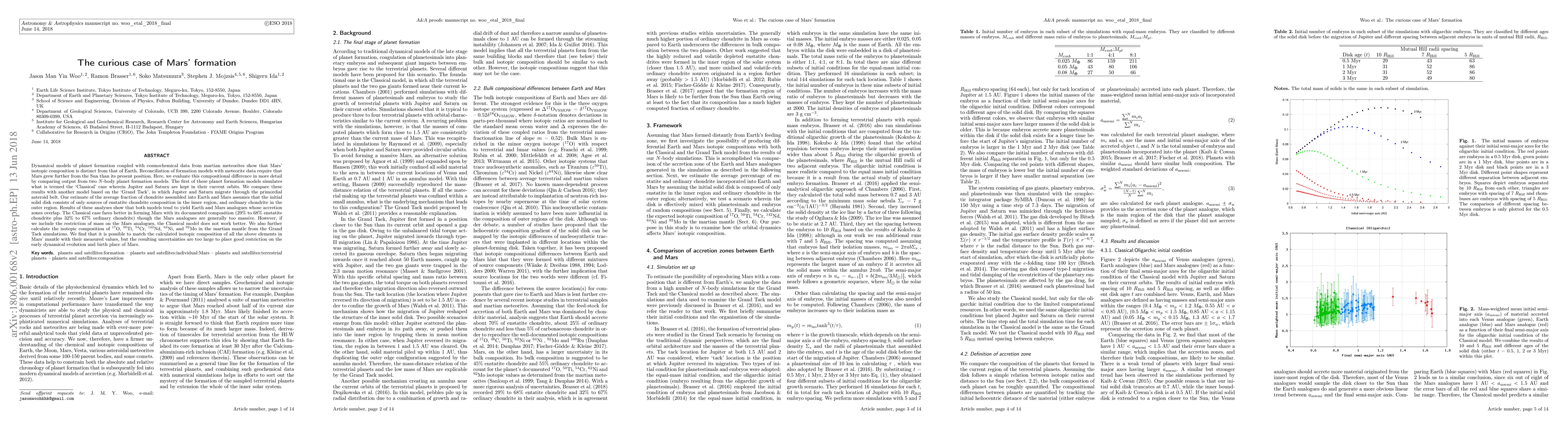 This research compares two planet formation models to explain Mars' distinct isotopic composition compared to Earth, finding that while the "Classical" model better aligns with Mars' documented composition, the "Grand Tack" model can match isotopic values but with large uncertainties.