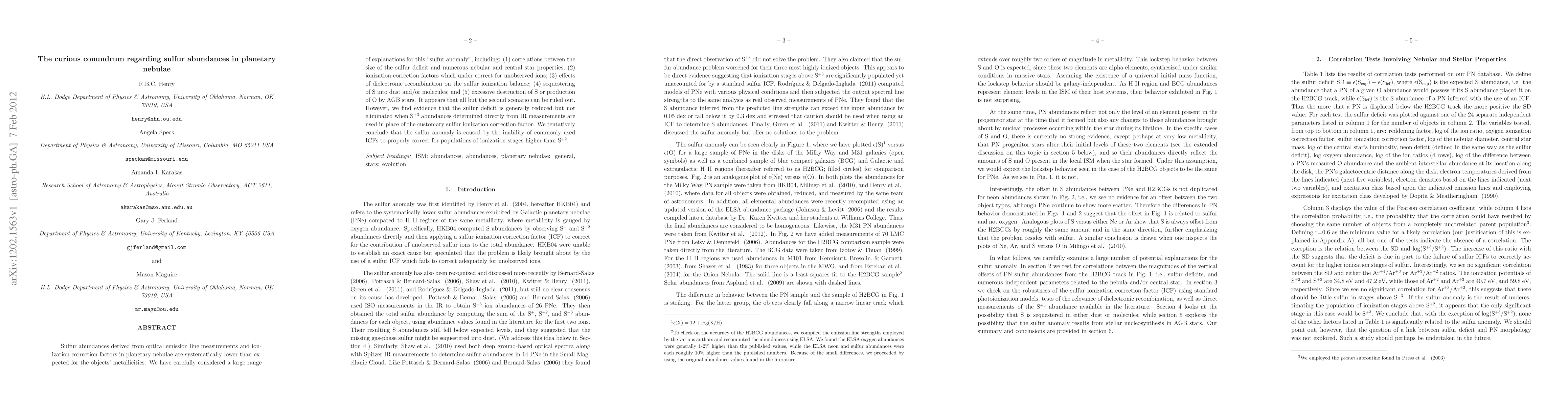 The paper presents a detailed analysis of sulfur abundances in PNe, proposing that the anomaly stems from inadequate ICFs for higher ionization stages of sulfur.
