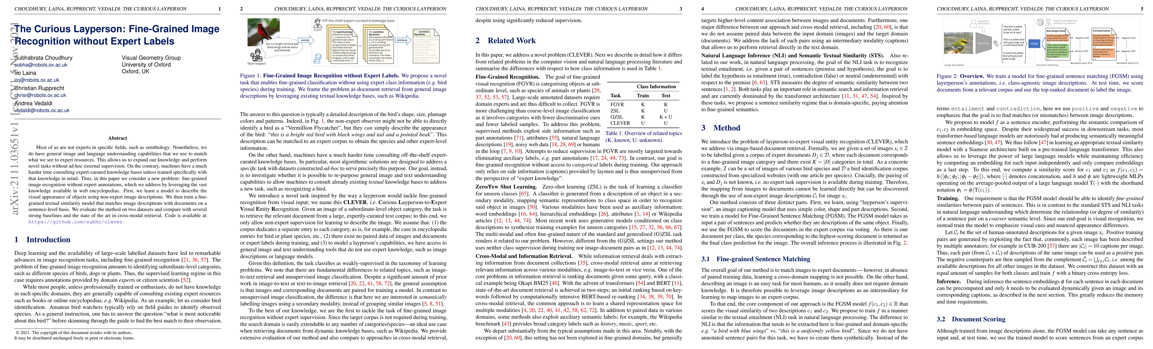 Most of us are not experts in specific fields, such as ornithology. Nonetheless, we do have general image and language understanding capabilities that we use to match what we see to expert resources. This allows us to expand our knowledge and perform novel tasks without ad-hoc external supervision. On the contrary, machines have a much harder time consulting expert-curated knowledge bases unless trained specifically with that knowledge in mind. Thus, in this paper we consider a new problem: fine-grained image recognition without expert annotations, which we address by leveraging the vast knowledge available in web encyclopedias. First, we learn a model to describe the visual appearance of objects using non-expert image descriptions. We then train a fine-grained textual similarity model that matches image descriptions with documents on a sentence-level basis. We evaluate the method on two datasets and compare with several strong baselines and the state of the art in cross-modal retrieval. Code is available at: https://github.com/subhc/clever