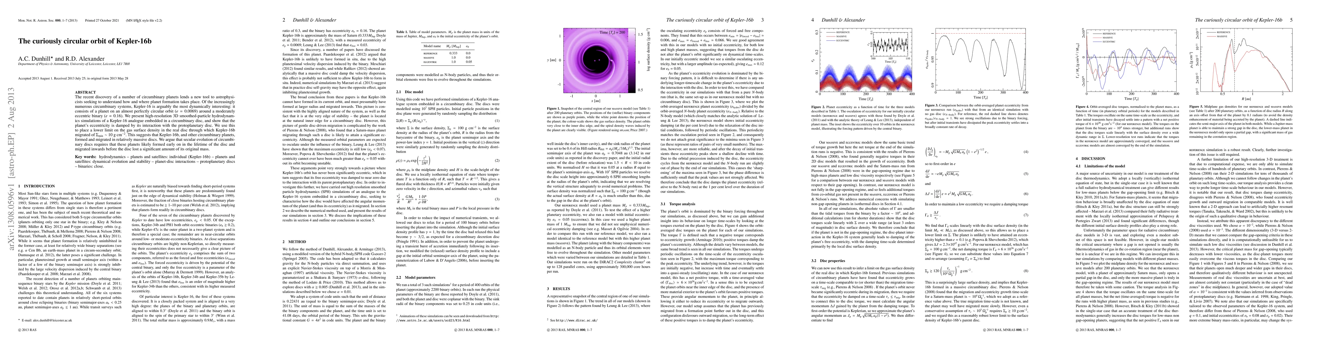 The recent discovery of a number of circumbinary planets lends a new tool to astrophysicists seeking to understand how and where planet formation takes place. Of the increasingly numerous circumbinary systems, Kepler-16 is arguably the most dynamically interesting: it consists of a planet on an almost perfectly circular orbit (e = 0.0069) around a moderately eccentric binary (e = 0.16). We present high-resolution 3D smoothed-particle hydrodynamics simulations of a Kepler-16 analogue embedded in a circumbinary disc, and show that the planet's eccentricity is damped by its interaction with the protoplanetary disc. We use this to place a lower limit on the gas surface density in the real disc through which Kepler-16b migrated of \Sigma_min ~ 10 g cm^-2. This suggests that Kepler-16b, and other circumbinary planets, formed and migrated in relatively massive discs. We argue that secular evolution of circumbinary discs requires that these planets likely formed early on in the lifetime of the disc and migrated inwards before the disc lost a significant amount of its original mass.