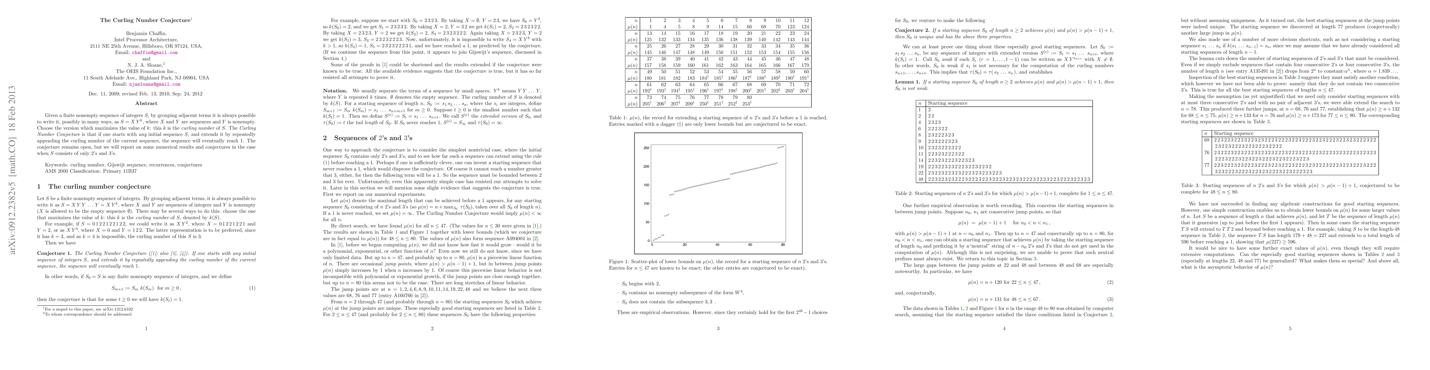 Given a finite nonempty sequence of integers S, by grouping adjacent terms it is always possible to write it, possibly in many ways, as S = X Y^k, where X and Y are sequences and Y is nonempty. Choose the version which maximizes the value of k: this k is the curling number of S. The Curling Number Conjecture is that if one starts with any initial sequence S, and extends it by repeatedly appending the curling number of the current sequence, the sequence will eventually reach 1. The conjecture remains open, but we will report on some numerical results and conjectures in the case when S consists of only 2's and 3's.