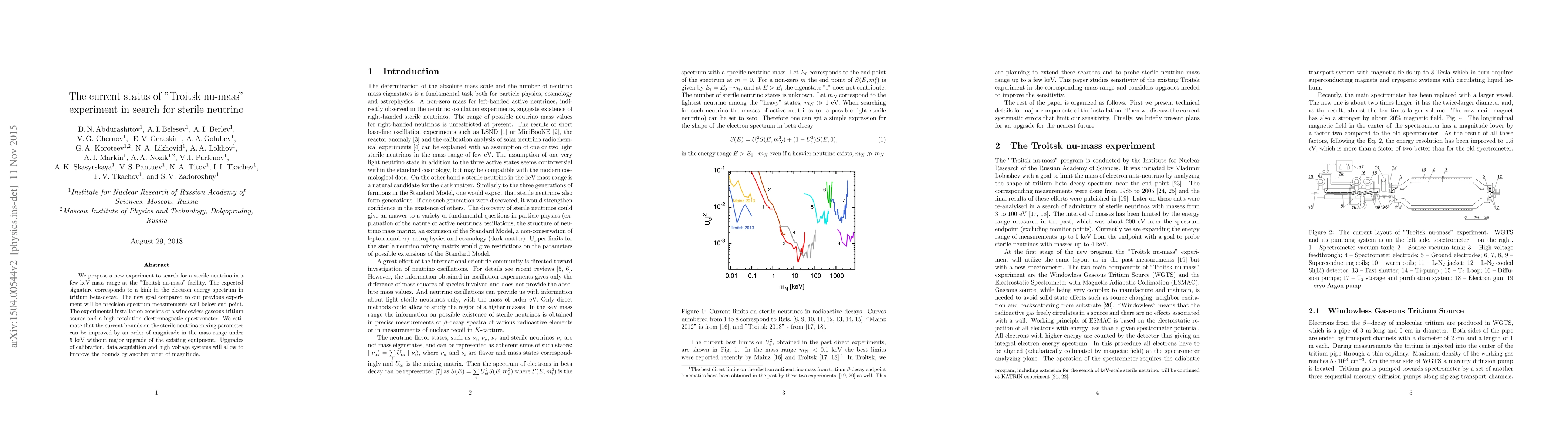 We propose a new experiment to search for a sterile neutrino in a few keV mass range at the "Troitsk nu-mass" facility. The expected signature corresponds to a kink in the electron energy spectrum in tritium beta-decay. The new goal compared to our previous experiment will be precision spectrum measurements well below end point. The experimental installation consists of a windowless gaseous tritium source and a high resolution electromagnetic spectrometer. We estimate that the current bounds on the sterile neutrino mixing parameter can be improved by an order of magnitude in the mass range under 5 keV without major upgrade of the existing equipment. Upgrades of calibration, data acquisition and high voltage systems will allow to improve the bounds by another order of magnitude.