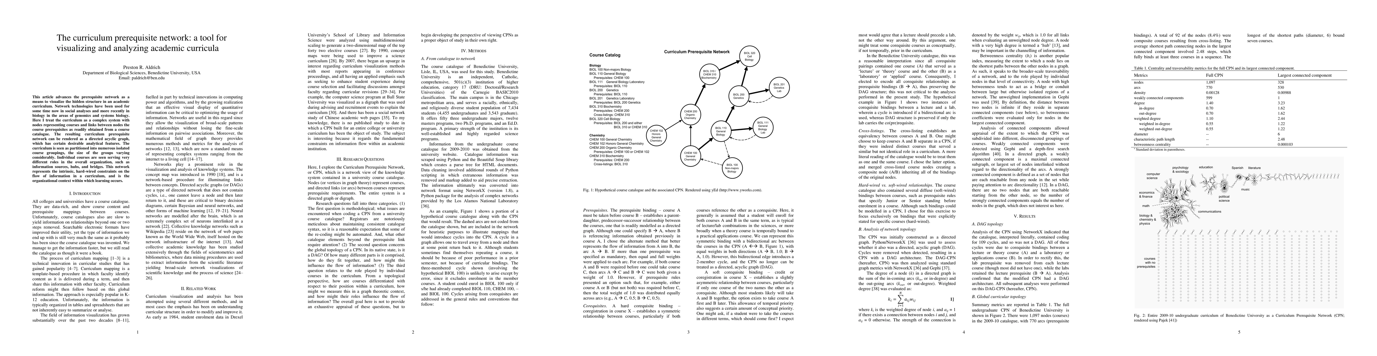 This article advances the prerequisite network as a means to visualize the hidden structure in an academic curriculum. Network technologies have been used for some time now in social analyses and more recently in biology in the areas of genomics and systems biology. Here I treat the curriculum as a complex system with nodes representing courses and links between nodes the course prerequisites as readily obtained from a course catalogue. The resulting curriculum prerequisite network can be rendered as a directed acyclic graph, which has certain desirable analytical features. The curriculum is seen as partitioned into numerous isolated course groupings, the size of the groups varying considerably. Individual courses are seen serving very different roles in the overall organization, such as information sources, hubs, and bridges. This network represents the intrinsic, hard-wired constraints on the flow of information in a curriculum, and is the organizational context within which learning occurs.