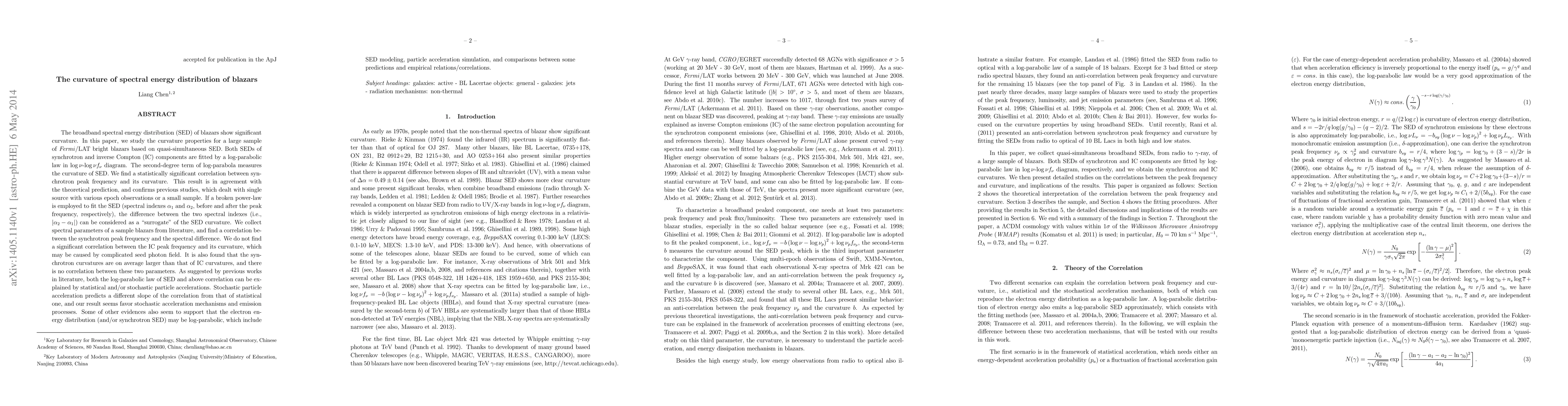 This paper investigates the curvature of the spectral energy distribution (SED) of blazars using a large sample of Fermi/LAT bright blazars. It finds a significant correlation between the synchrotron peak frequency and its curvature, supporting theoretical predictions and suggesting stochastic particle acceleration mechanisms.