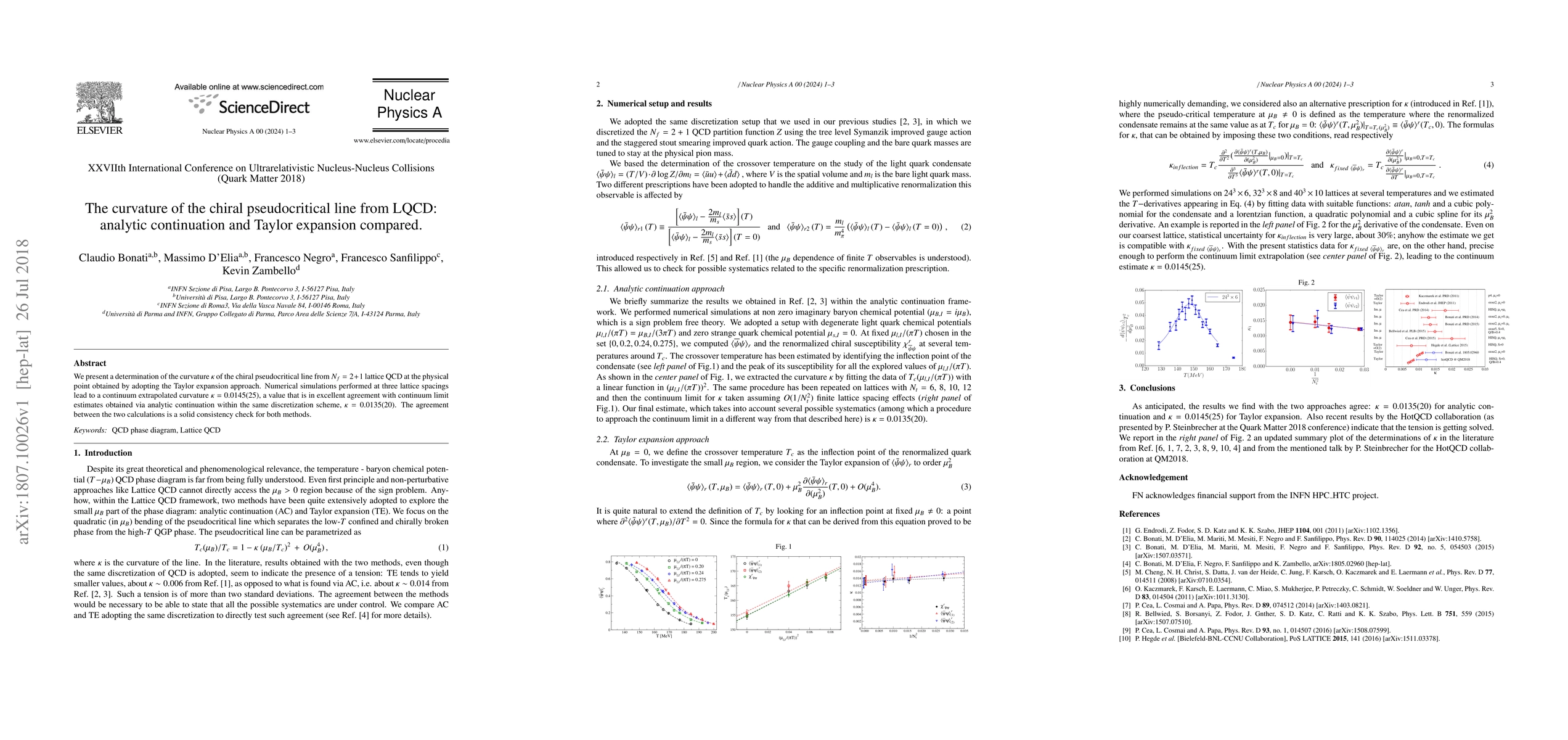 This paper determines the curvature $\kappa$ of the chiral pseudocritical line from $N_f=2+1$ lattice QCD using Taylor expansion and compares it to estimates from analytic continuation. The results, $\kappa = 0.0145(25)$ and $\kappa = 0.0135(20)$, respectively, show excellent agreement, validating both methods.