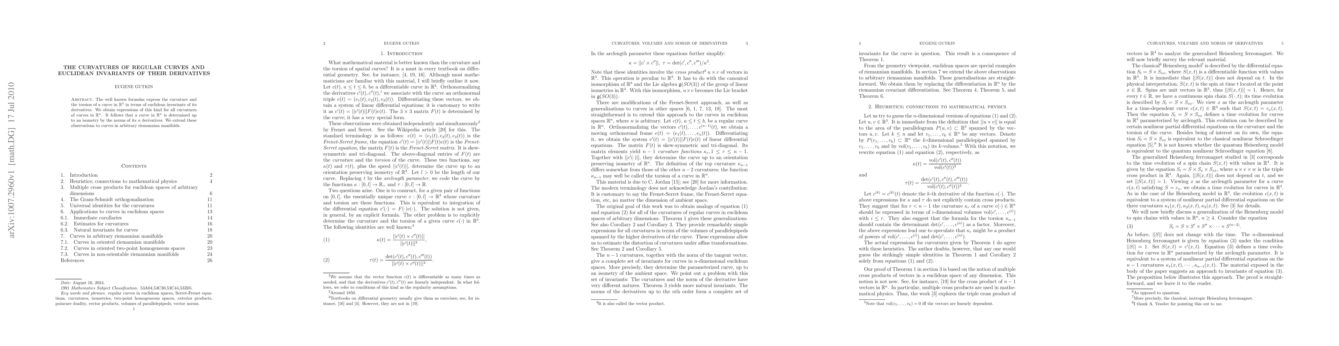 A new mathematical framework provides a general formula to calculate curvature and torsion for curves in n-dimensional spaces, revealing that curves can be uniquely identified by their derivatives' norms up to isometry.