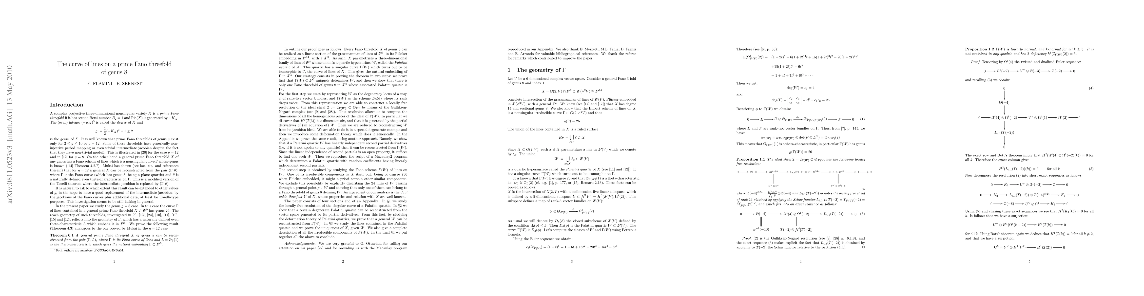 Researchers show that a prime Fano threefold of genus 8 can be reconstructed from its Fano curve of lines and theta-characteristic, providing a way to create detailed geometric models of these complex structures.