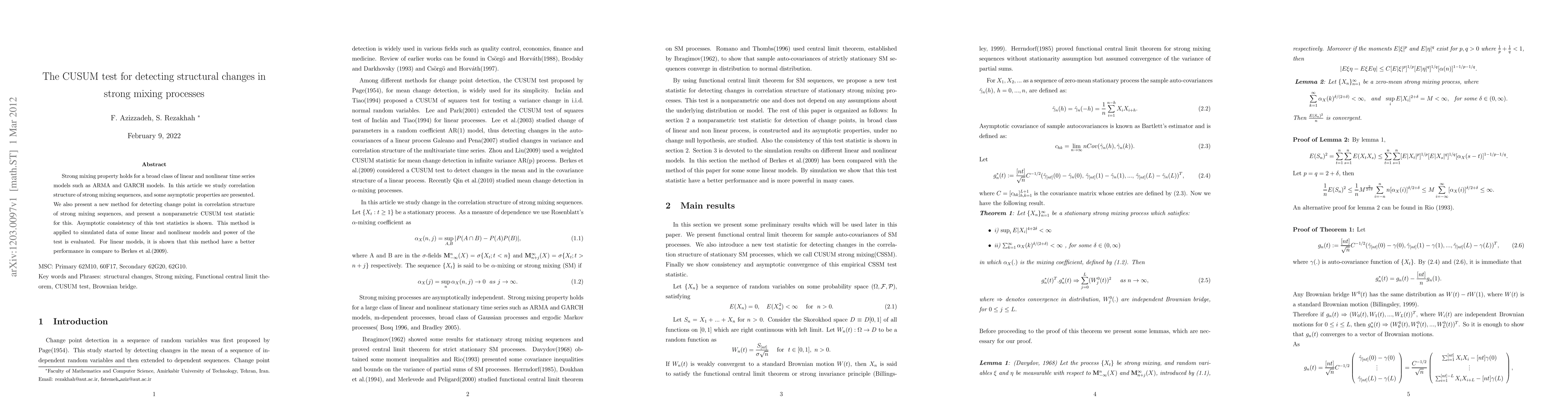 This paper introduces a new CUSUM test for detecting change points in the correlation structure of strong mixing processes, demonstrating its asymptotic consistency and superior performance over existing methods, particularly for linear models like ARMA and GARCH. The method is tested on simulated data to evaluate its power.