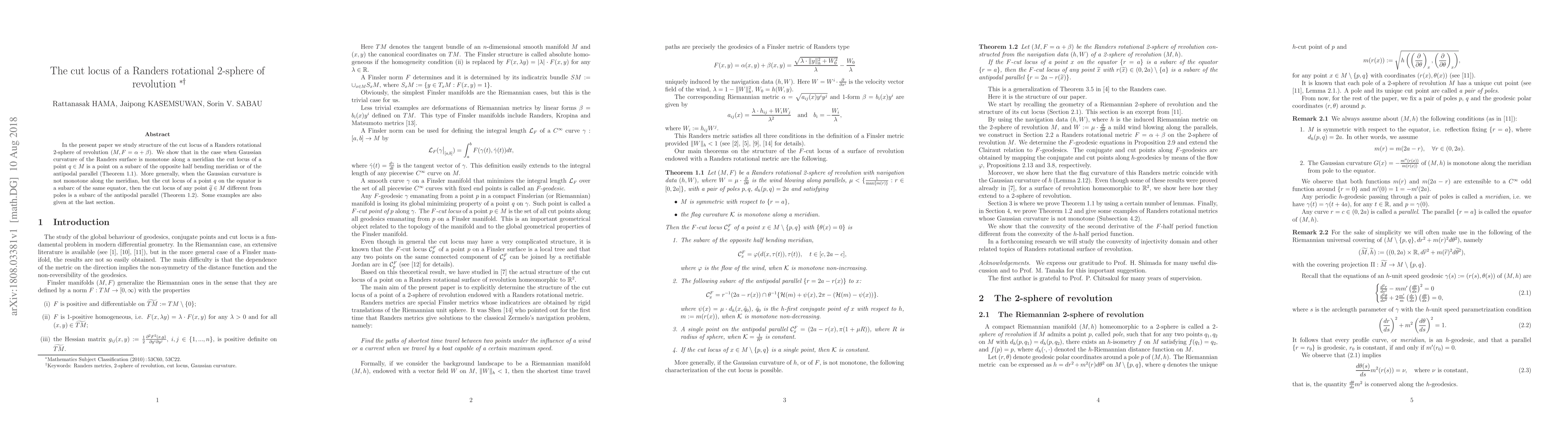 This paper investigates the cut locus structure of a Randers rotational 2-sphere of revolution, demonstrating that under specific curvature conditions, the cut locus is either a point on a subarc of the opposite half bending meridian or a subarc of the antipodal parallel. Examples and comparisons with the Riemannian case are provided to highlight differences.