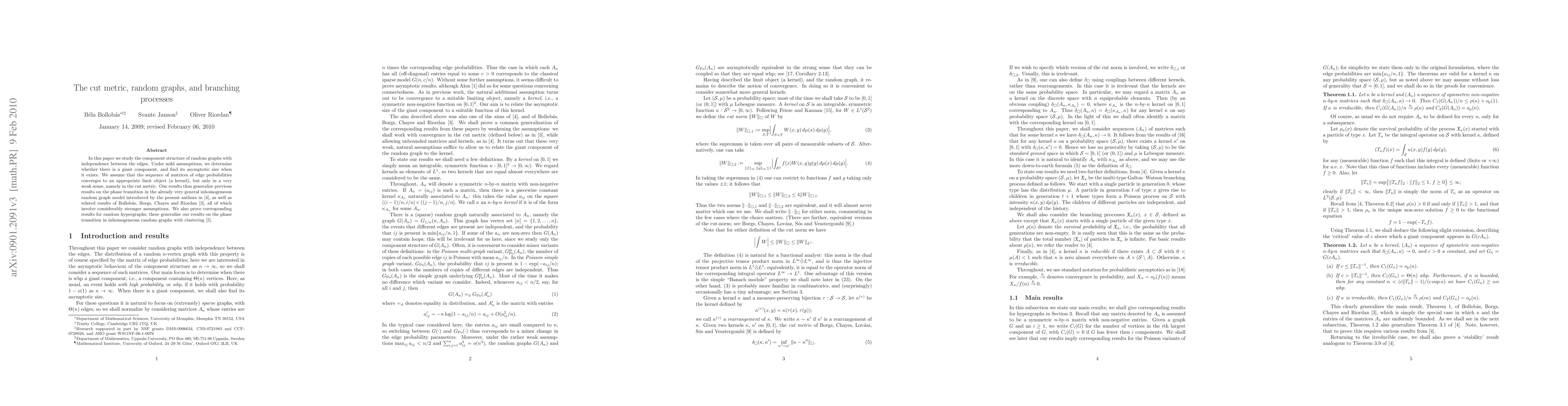 In this paper we study the component structure of random graphs with independence between the edges. Under mild assumptions, we determine whether there is a giant component, and find its asymptotic size when it exists. We assume that the sequence of matrices of edge probabilities converges to an appropriate limit object (a kernel), but only in a very weak sense, namely in the cut metric. Our results thus generalize previous results on the phase transition in the already very general inhomogeneous random graph model we introduced recently, as well as related results of Bollob\'as, Borgs, Chayes and Riordan, all of which involve considerably stronger assumptions. We also prove corresponding results for random hypergraphs; these generalize our results on the phase transition in inhomogeneous random graphs with clustering.