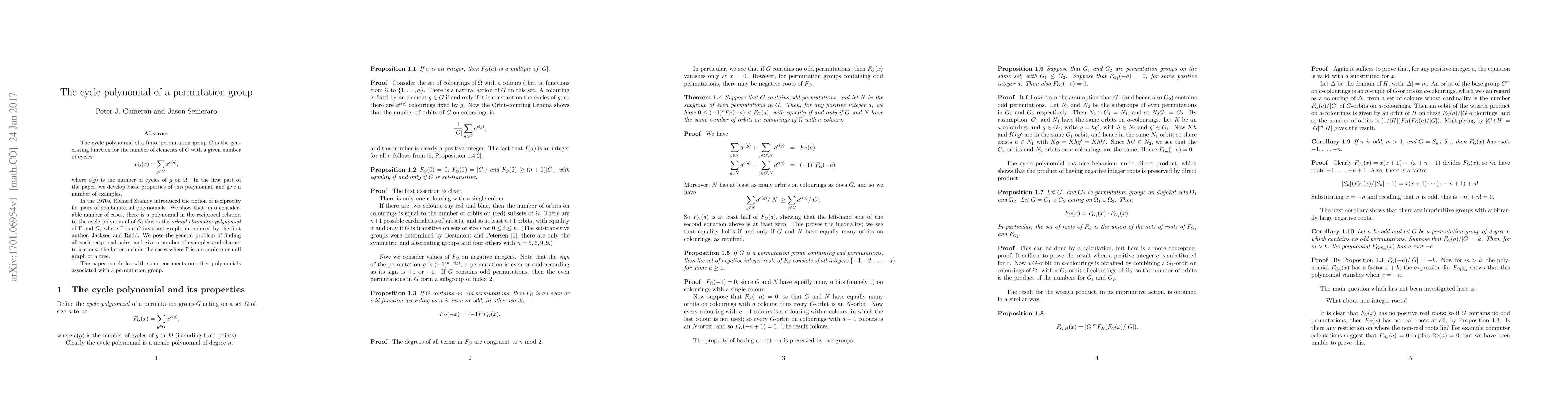 The paper explores the cycle polynomial of a permutation group, developing its properties and finding reciprocal pairs with the orbital chromatic polynomial of a G-invariant graph. It provides examples and characterizations for various cases, including complete or null graphs and trees.