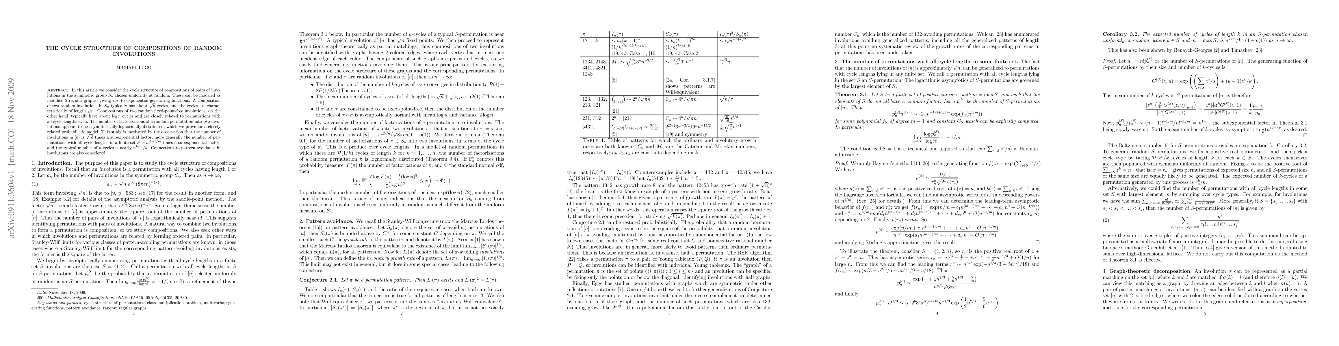 This paper investigates the cycle structure of compositions of random involutions in the symmetric group, revealing that typical compositions have about n^(1/2) cycles of length n^(1/2). It also explores the factorization of random permutations into two involutions, showing an asymptotically lognormal distribution.