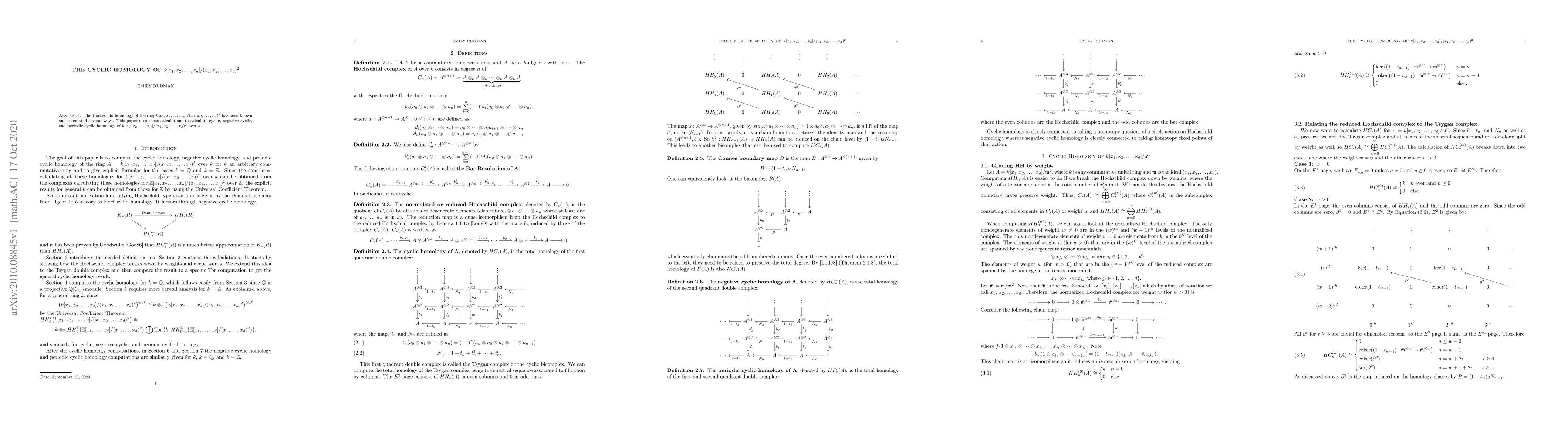 This paper calculates the cyclic, negative cyclic, and periodic cyclic homology of the ring $k[x_1,x_2,\ldots,x_d]/(x_1,x_2,\ldots,x_d)^2$ over $k$, utilizing previously established results on its Hochschild homology.