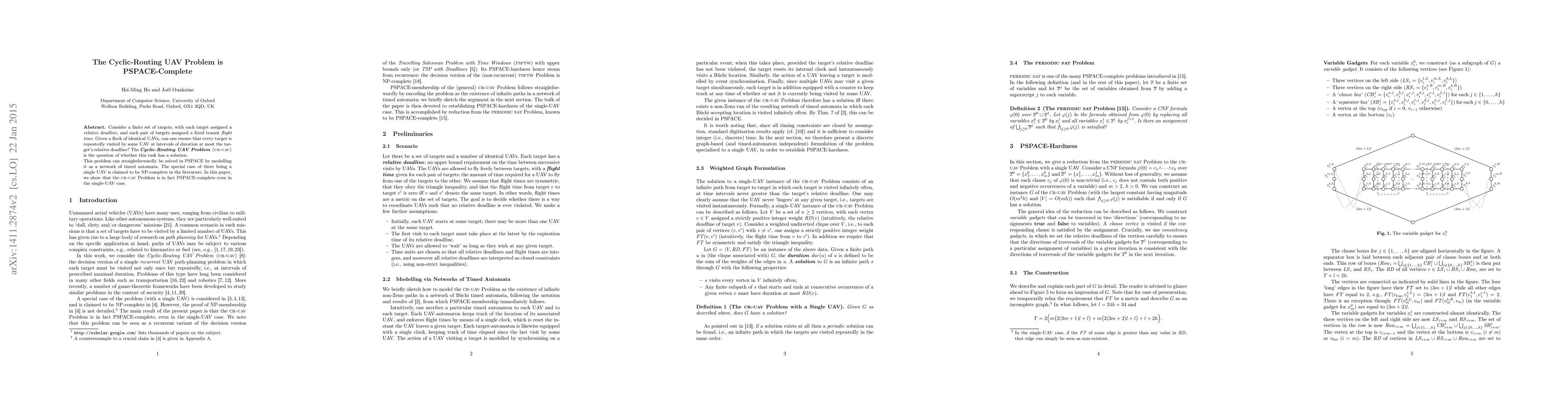 The Cyclic-Routing UAV Problem has been proven to be PSPACE-complete, even in the single-UAV case, which means it's as hard as solving some of the most complex problems in computer science.