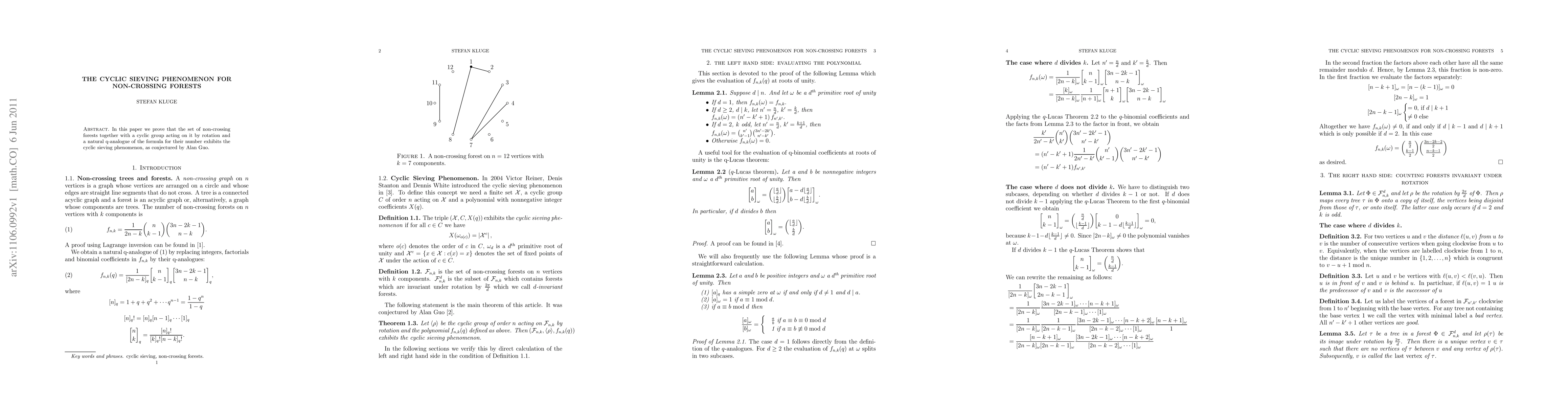 In this paper we prove that the set of non-crossing forests together with a cyclic group acting on it by rotation and a natural q-analogue of the formula for their number exhibits the cyclic sieving phenomenon, as conjectured by Alan Guo.