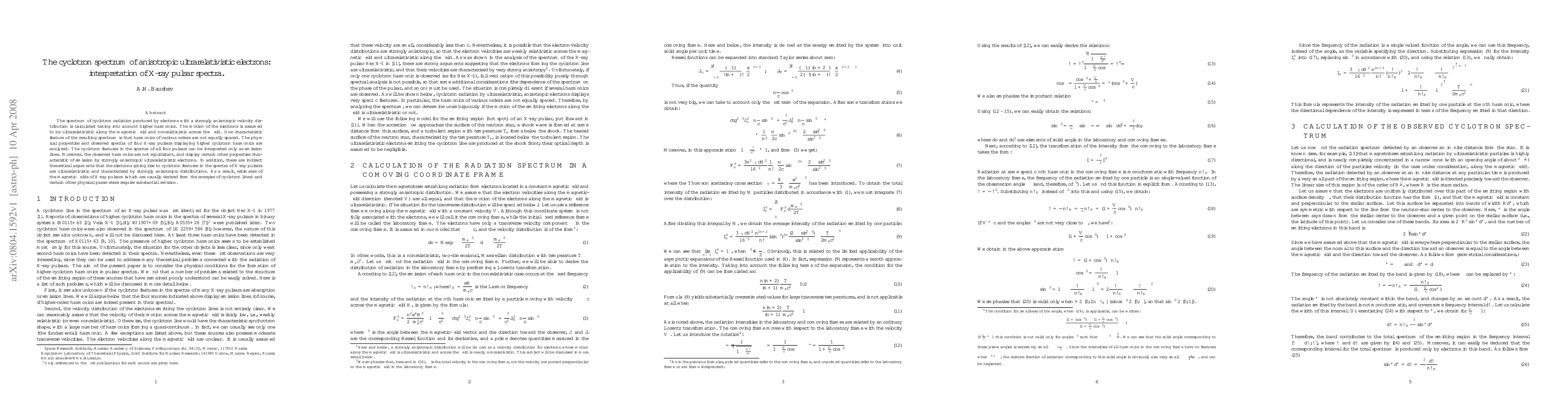 Research analyzes X-ray pulsar spectra to conclude that ultrarelativistic electrons with strongly anisotropic distributions produce emission lines with non-equidistant harmonics, requiring revised estimates of magnetic fields and other physical parameters.