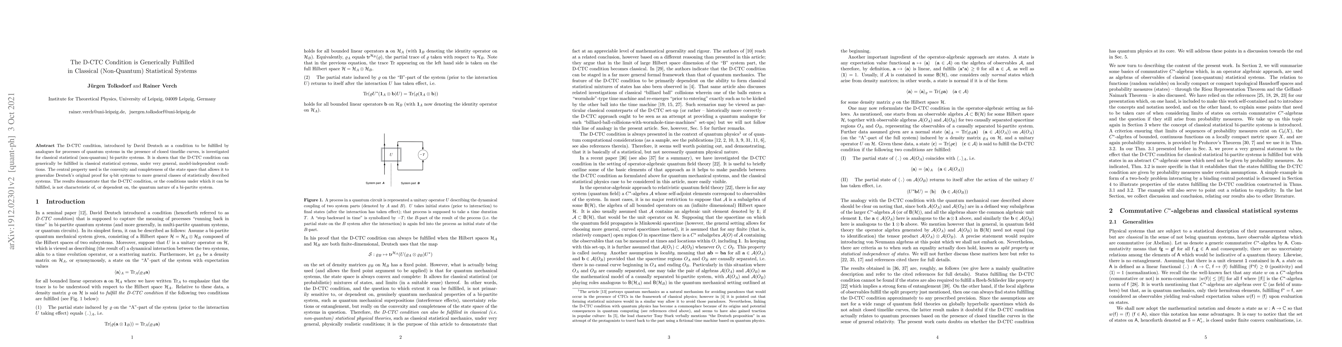 The D-CTC condition is fulfilled in classical statistical systems under general conditions, showing it's not unique to quantum systems.