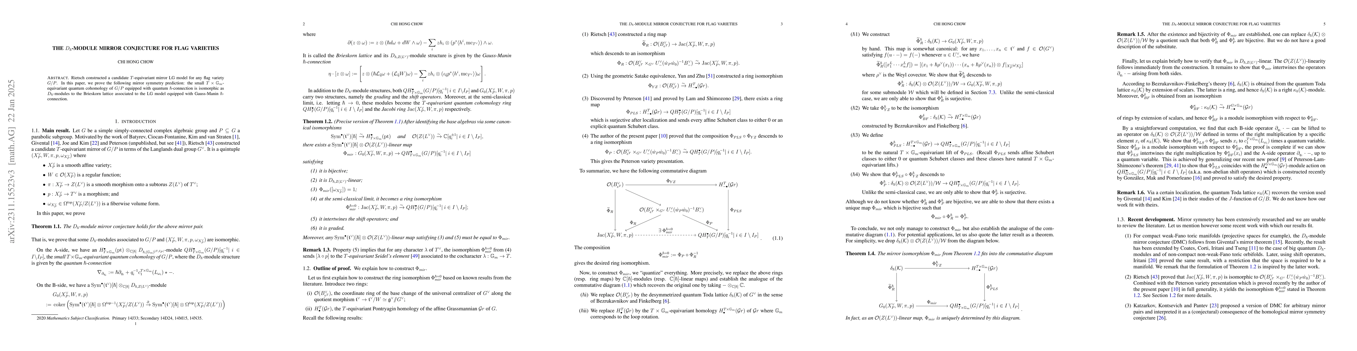 This paper proves the $D$-module mirror conjecture for flag varieties by showing an isomorphism between the small $T\times\mathbb{G}_m$-equivariant quantum cohomology of $G/P$ and the Brieskorn lattice of the mirror LG model, both equipped with their respective connections.