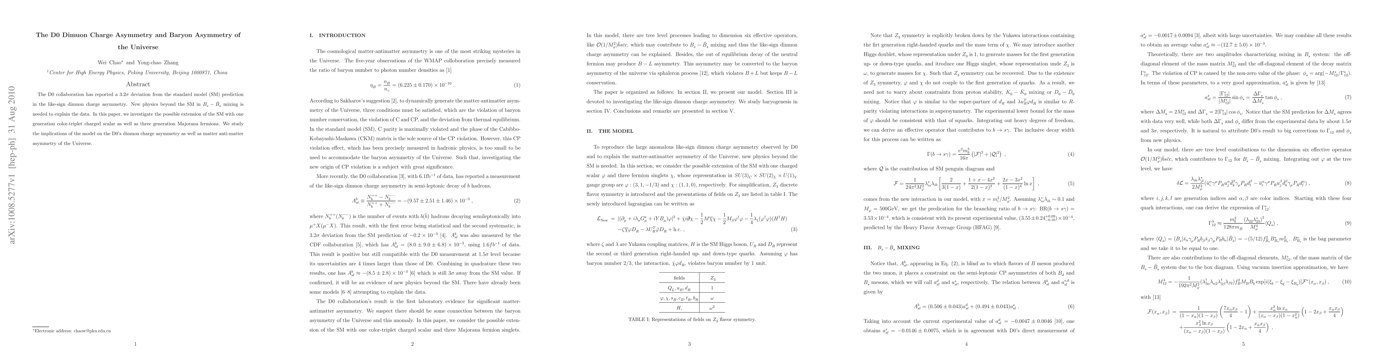 The D0 collaboration has reported a 3.2 \sigma deviation from the Standard Model (SM) prediction in the like-sign dimuon charge asymmetry. New physics beyond the SM in B_s - \bar B_s mixing is needed to explain the data. In this paper, we investigate the possible extension of the SM with one generation color-triplet charged scalar as well as three generation Majorana fermions. We study the implications of the model on the D0's dimuon charge asymmetry as well as matter anti-matter asymmetry of the Universe.