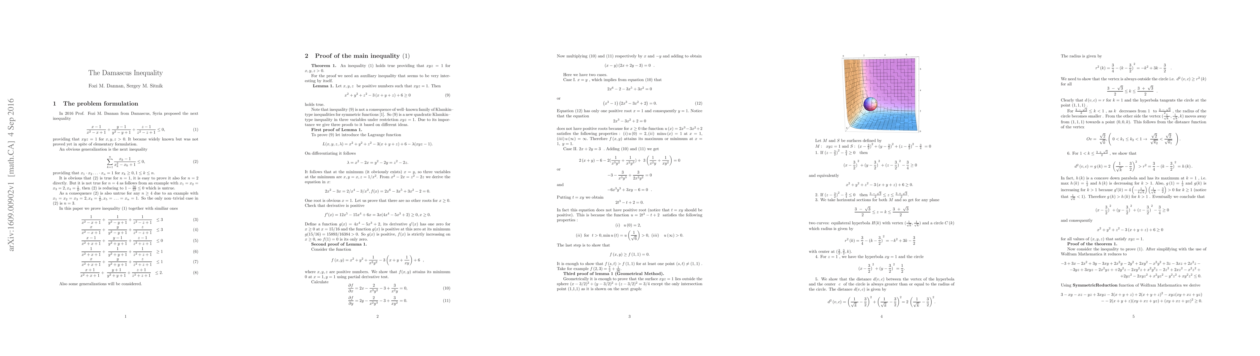 In 2016 Prof. Fozi M. Dannan from Damascus, Syria proposed an inequality for three positive numbers with unit product. It became widely known but was not proved yet in spite of elementary formulation. We give some proofs for this inequality, a number of its generalizations and some connected unsolved problems and conjectures.