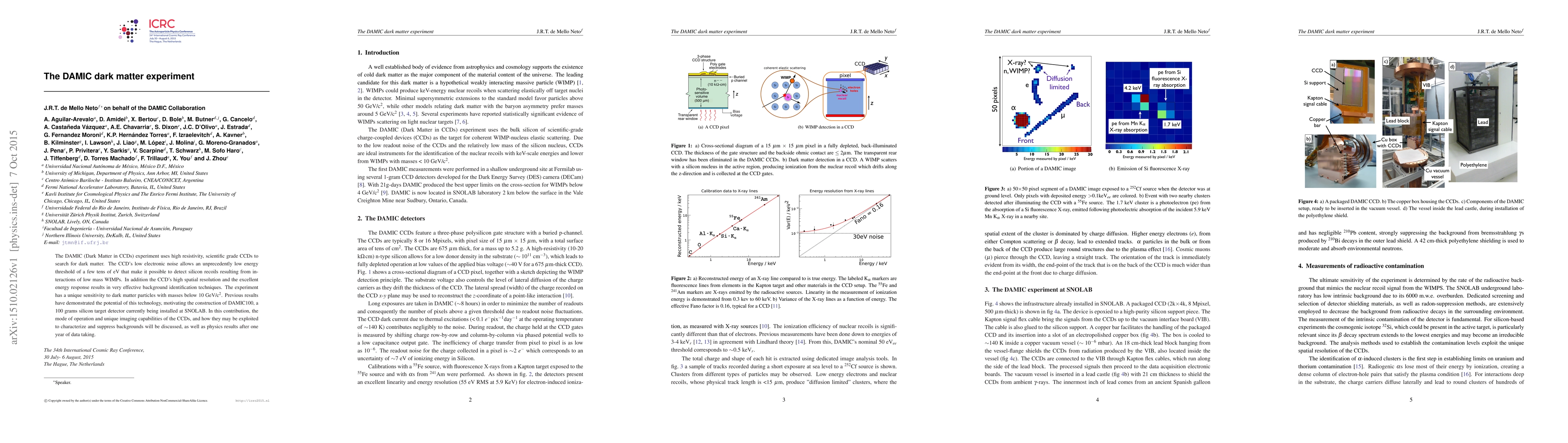 The DAMIC experiment utilizes high-resistivity CCDs to detect low-mass WIMPs with unprecedented sensitivity due to its low energy threshold and effective background identification. The DAMIC100 detector, currently deployed at SNOLAB, aims to enhance dark matter detection capabilities, with initial physics results presented after one year of data collection.