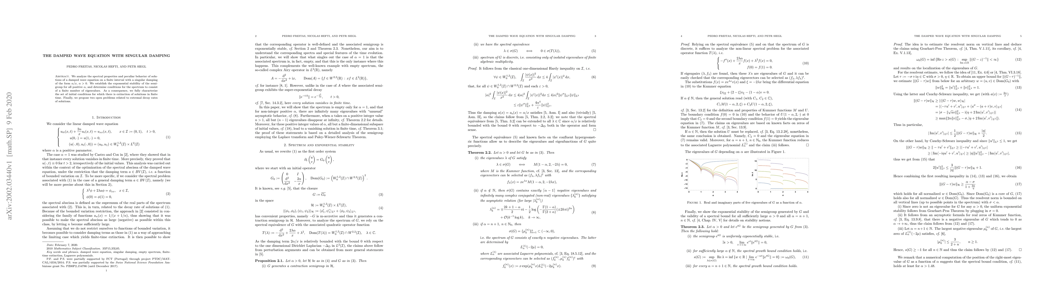 Researchers analyzed a damped wave equation with singular damping and found that solutions exhibit exponential stability for all positive damping rates, leading to conditions for extinction in finite time and proposing open problems related to decay rates.