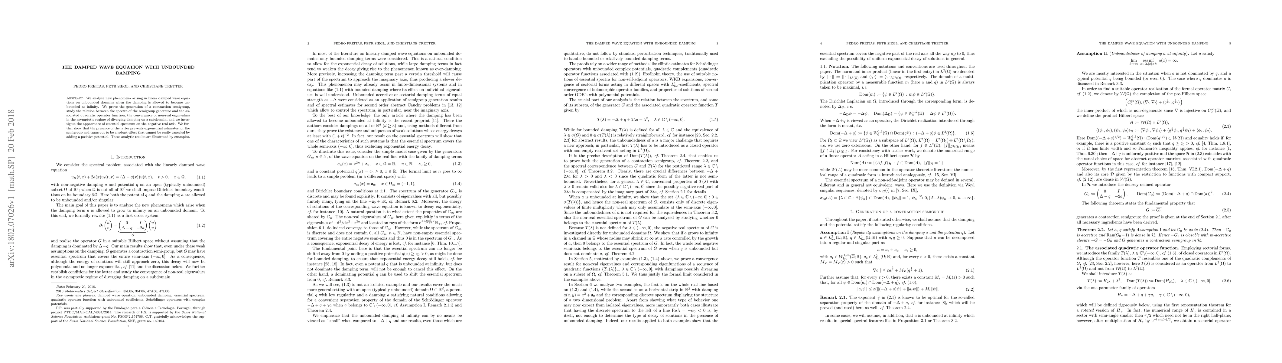 Researchers study the behavior of damped wave equations on unbounded domains with unbounded damping, finding that it generates a contraction semigroup and leads to the appearance of essential spectrum on the negative real axis, preventing exponential estimates for the semigroup.