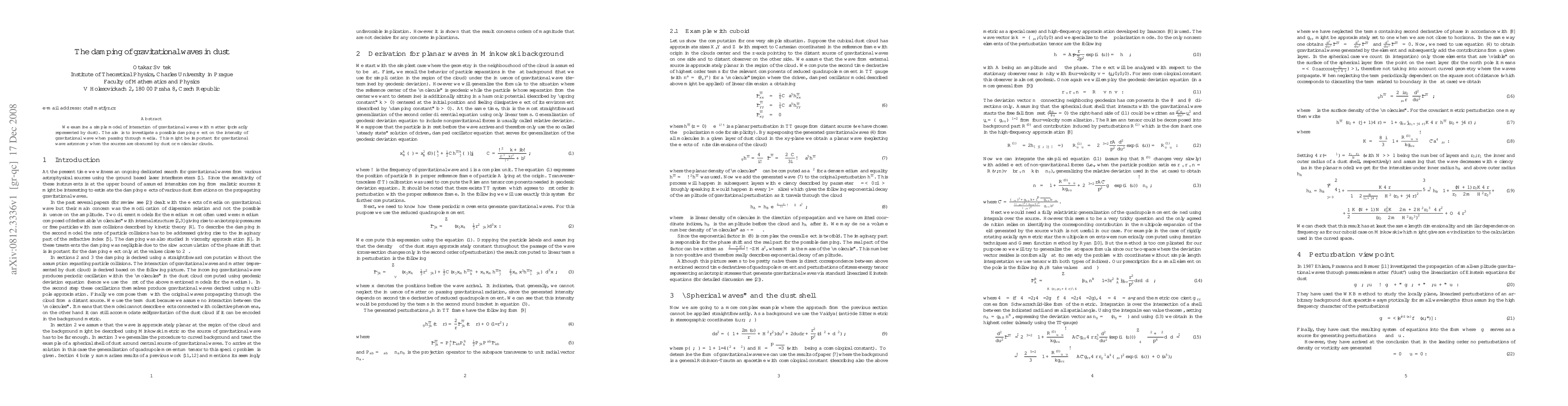 The development of a simple, linearized model for gravitational waves propagation through a cloud of particles.