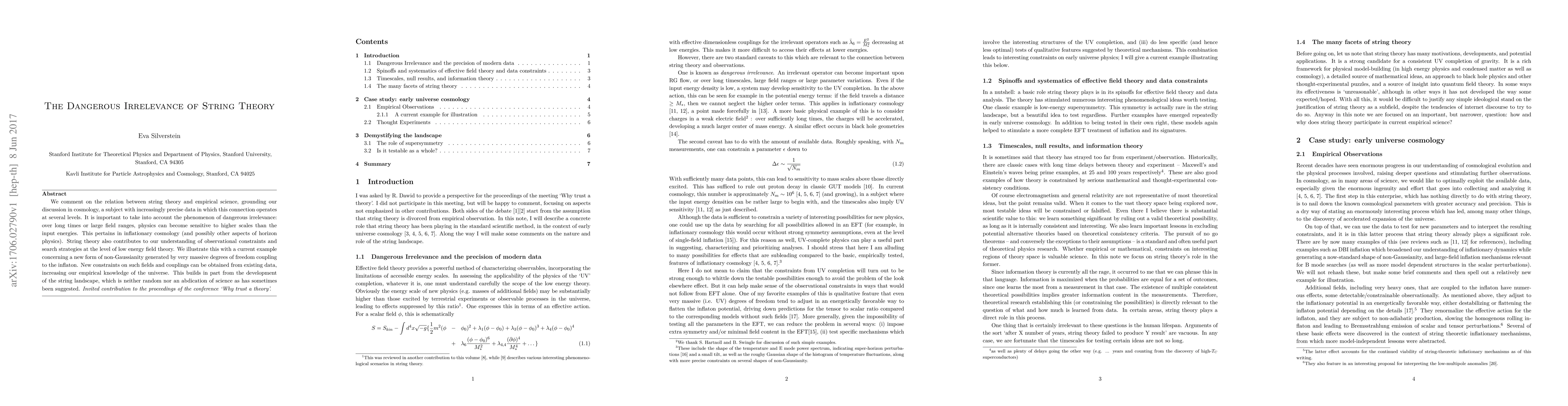 This paper discusses the relevance of string theory in empirical science, particularly in cosmology, highlighting its potential to generate new insights and constraints on low-energy field theories. It emphasizes the concept of "dangerous irrelevance," where physics can become sensitive to higher scales, and uses inflationary cosmology as an example to illustrate these points.