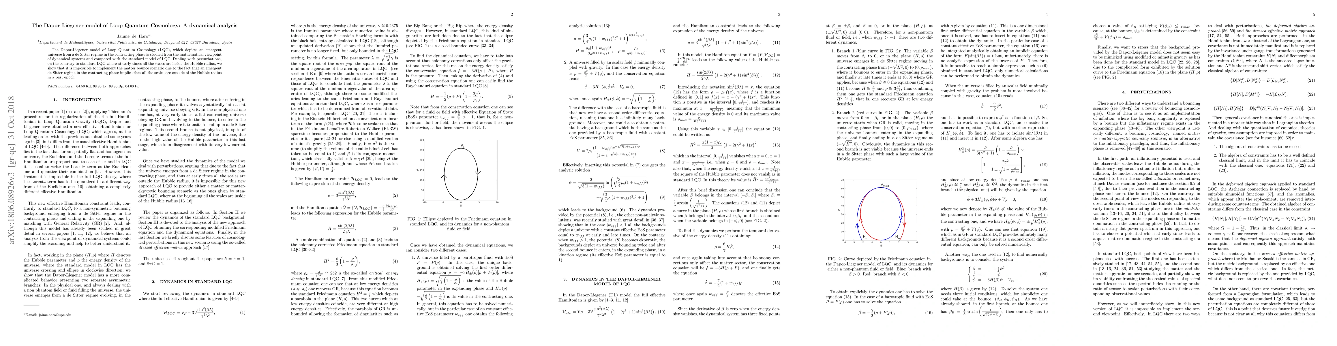 The Dapor-Liegener model of Loop Quantum Cosmology is analyzed for dynamical systems, revealing that unlike the standard model, it cannot implement a matter bounce scenario due to all scales being outside the Hubble radius in a past epoch. This contrasts with the standard LQC where all scales are inside the Hubble radius at early times.