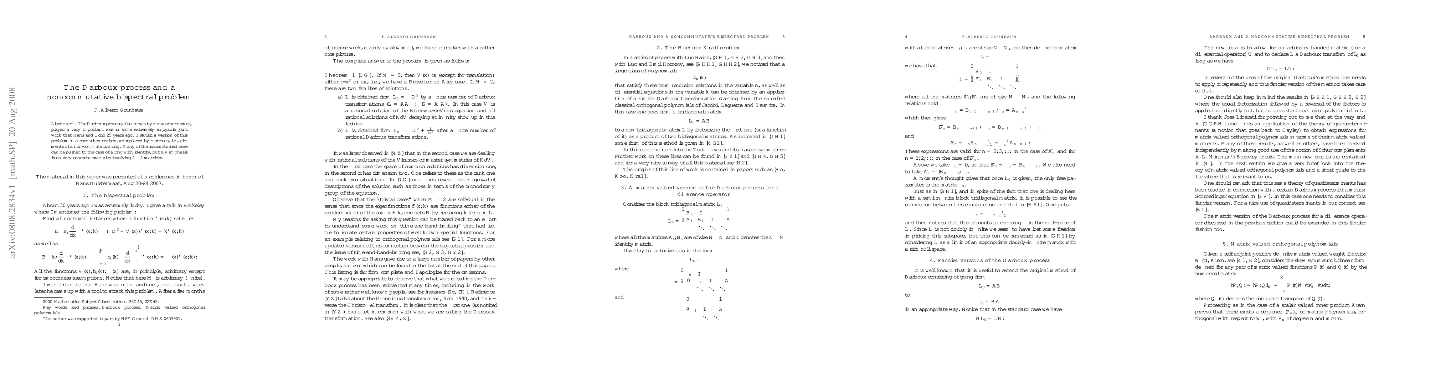 The Darboux process, also known by many other names, played a very important role in some extremely enjoyable joint work that Hans and I did 25 years ago. I revisit a version of this problem in a case when scalars are replaced by matrices, i.e., elements of a non-commutative ring. Many of the issues studied here can be pushed to the case of a ring with identity, but my emphasis is on very concrete examples involving $2 \times 2$ matrices.