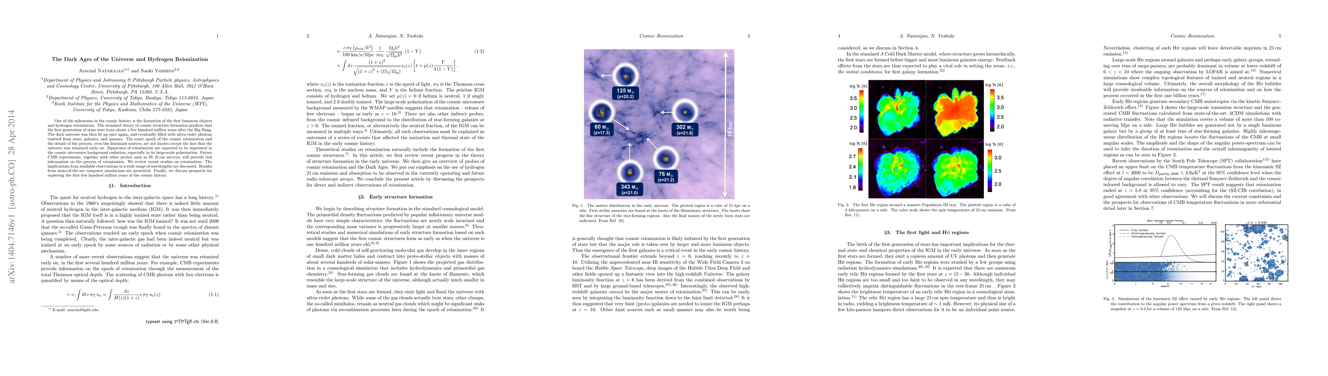 This paper reviews the epoch of hydrogen reionization following the Dark Ages of the universe, highlighting the formation of the first stars and their role in reionizing the cosmos. It discusses observational signatures and implications from various wavelengths, alongside results from advanced simulations, and outlines future prospects for studying this early cosmic phase.