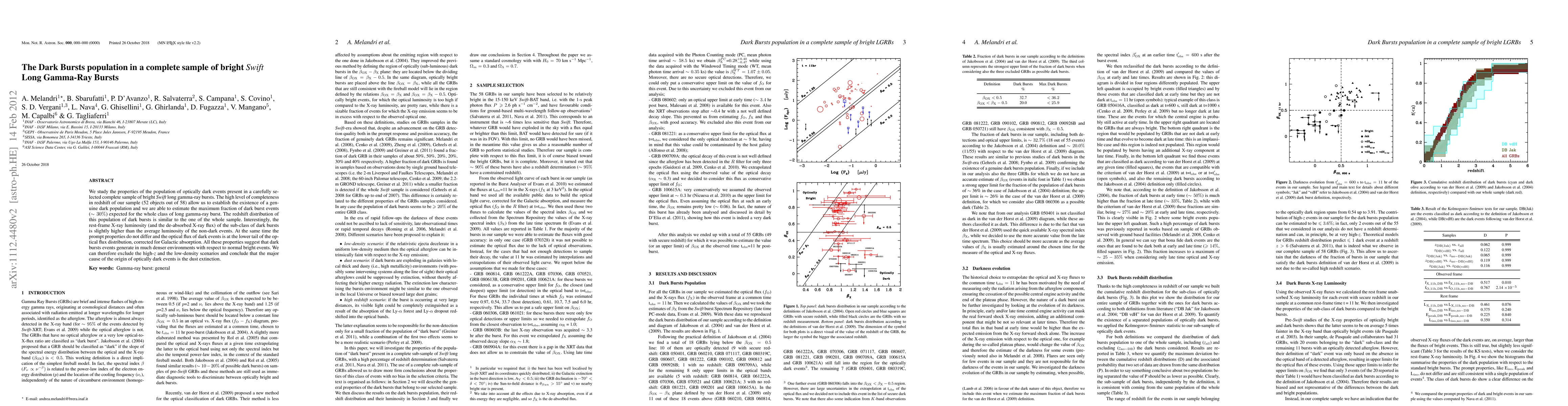 We study the properties of the population of optically dark events present in a carefully selected complete sample of bright Swift long gamma-ray bursts. The high level of completeness in redshift of our sample (52 objects out of 58) allow us to establish the existence of a genuine dark population and we are able to estimate the maximum fraction of dark burst events (~30%) expected for the whole class of long gamma-ray burst. The redshift distribution of this population of dark bursts is similar to the one of the whole sample. Interestingly, the rest-frame X-ray luminosity (and the de-absorbed X-ray flux) of the sub-class of dark bursts is slightly higher than the average luminosity of the non-dark events. At the same time the prompt properties do not differ and the optical flux of dark events is at the lower tail of the optical flux distribution, corrected for Galactic absorption. All these properties suggest that dark bursts events generate in much denser environments with respect to normal bright events. We can therefore exclude the high-z and the low-density scenarios and conclude that the major cause of the origin of optically dark events is the dust extinction.