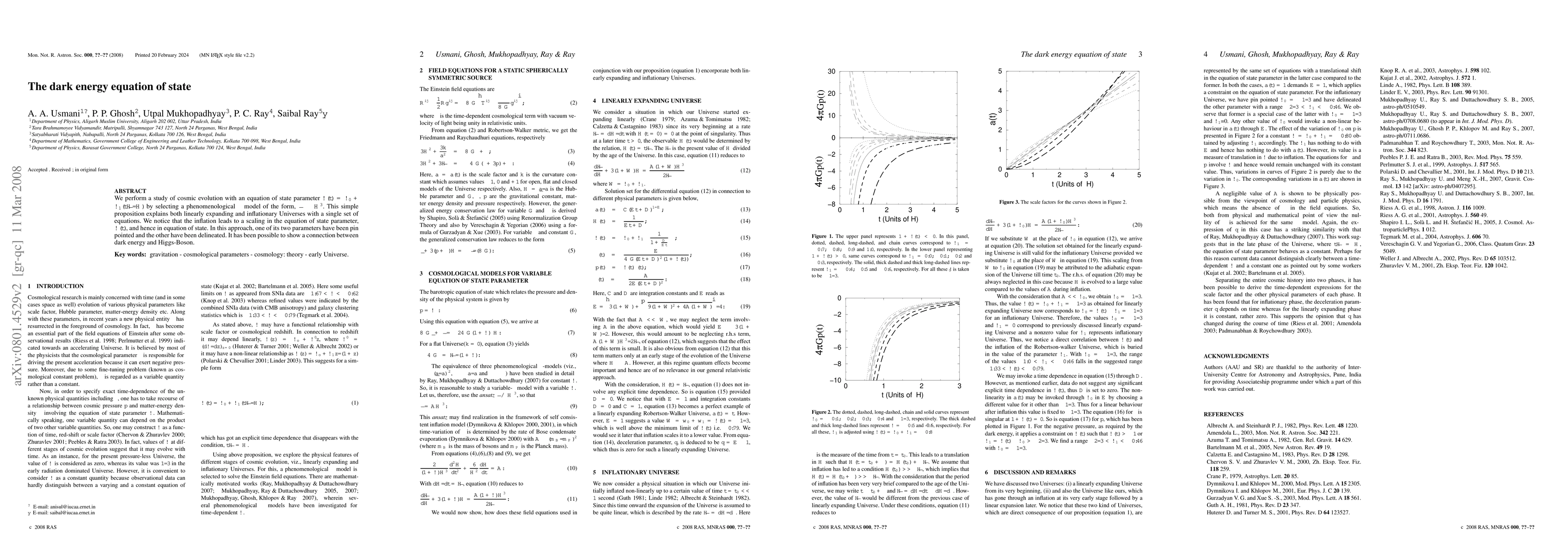 The paper introduces a phenomenological Λ model with an equation of state parameter ω(t) = ω0 + ω1(t˙H/H) that explains both linear expansion and inflationary universes, offering a potential link between dark energy and the Higgs-Boson.