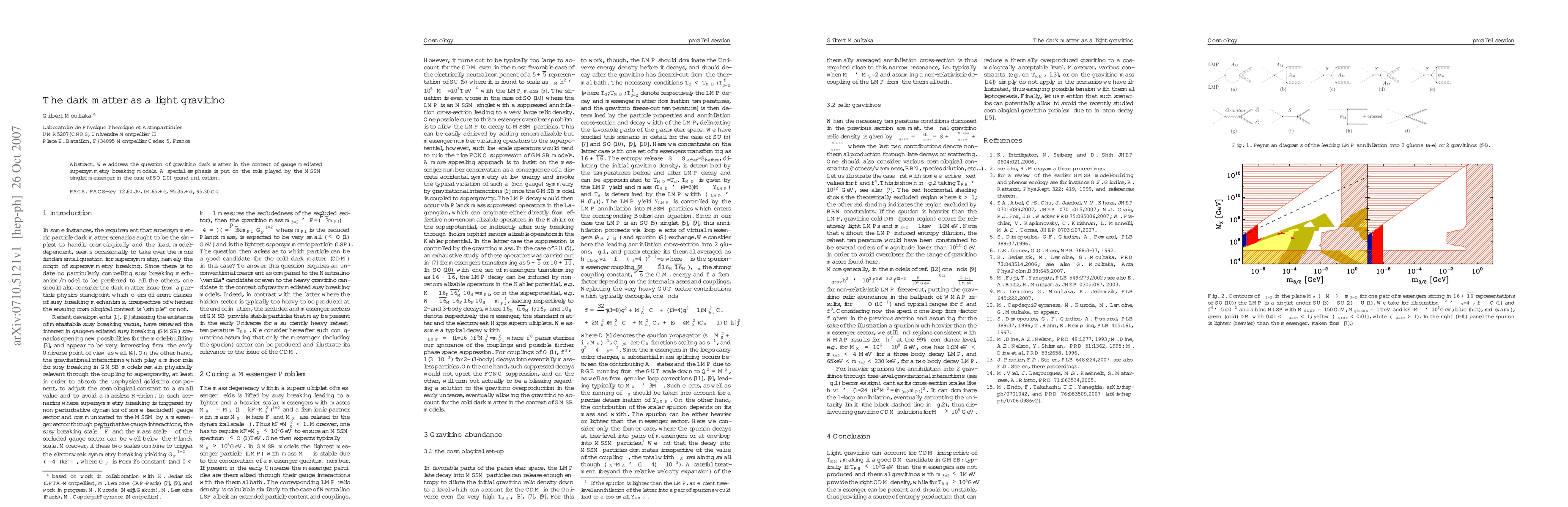 We address the question of gravitino dark matter in the context of gauge mediated supersymmetry breaking models. A special emphasis is put on the role played by the MSSM singlet messenger in the case of SO(10) grand unification.
