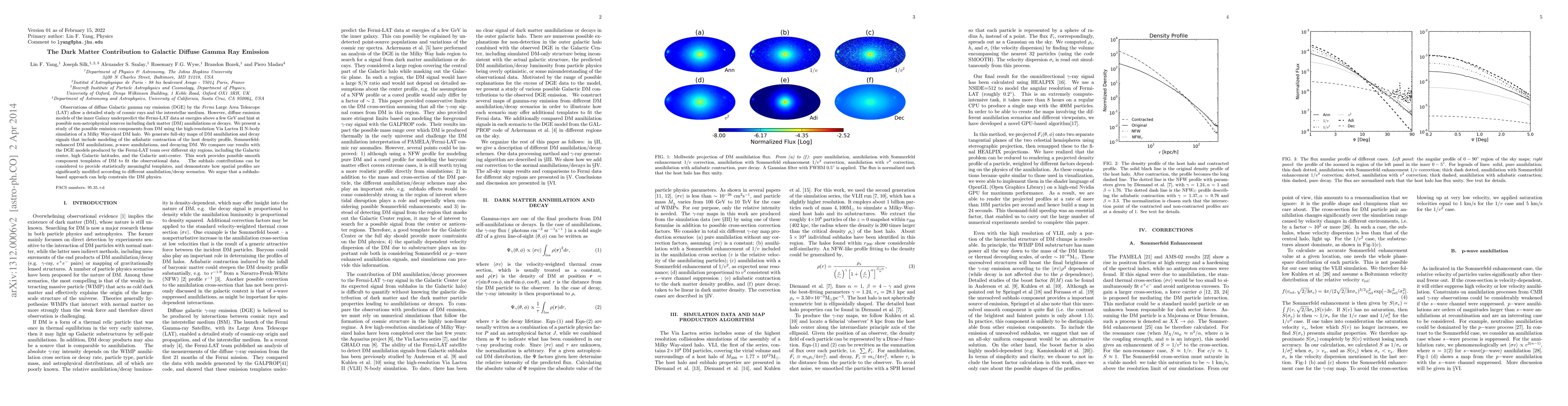 This paper investigates the potential contribution of dark matter (DM) to diffuse Galactic gamma ray emission (DGE) using the Via Lactea II N-body simulation, generating full-sky maps of DM annihilation and decay signals. It compares these DM models with Fermi-LAT DGE data, suggesting that DM could explain the discrepancies in DGE models, especially in regions like the Galactic center.