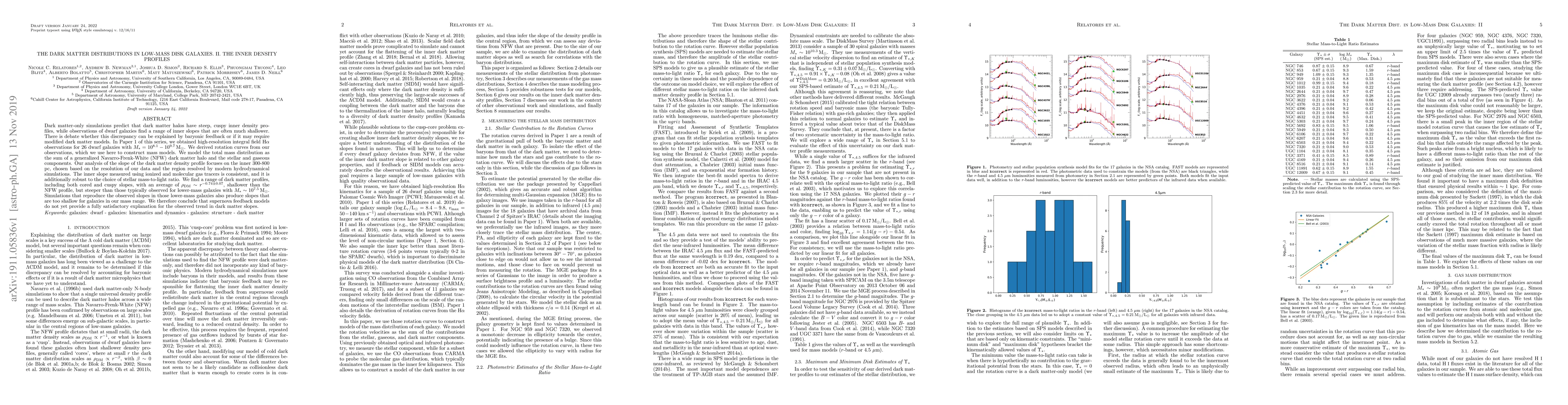 This paper investigates the inner density profiles of dark matter in low-mass disk galaxies using high-resolution H$\alpha$ observations. It finds a range of slopes, averaging $\rho_{\rm DM}\sim r^{-0.74\pm 0.07}$, which are shallower than predicted by NFW models but steeper than those in lower-mass galaxies. The results suggest that supernova feedback models do not fully explain the observed trends.