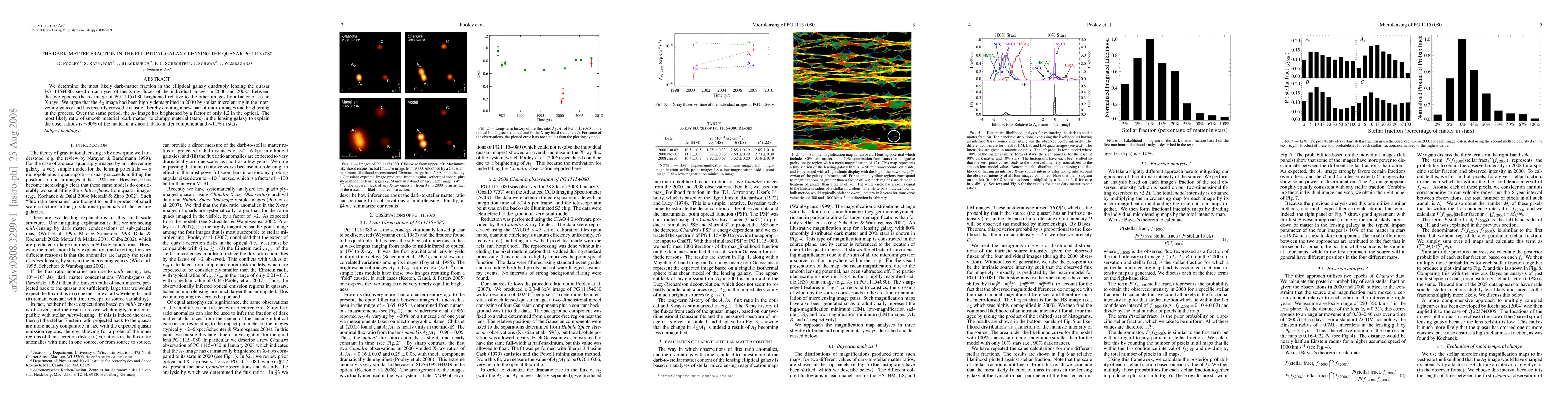We determine the most likely dark-matter fraction in the elliptical galaxy quadruply lensing the quasar PG1115+080 based on analyses of the X-ray fluxes of the individual images in 2000 and 2008. Between the two epochs, the A2 image of PG1115+080 brightened relative to the other images by a factor of six in X-rays. We argue that the A2 image had been highly demagnified in 2000 by stellar microlensing in the intervening galaxy and has recently crossed a caustic, thereby creating a new pair of micro-images and brightening in the process. Over the same period, the A2 image has brightened by a factor of only 1.2 in the optical. The most likely ratio of smooth material (dark matter) to clumpy material (stars) in the lensing galaxy to explain the observations is ~90% of the matter in a smooth dark-matter component and ~10% in stars.