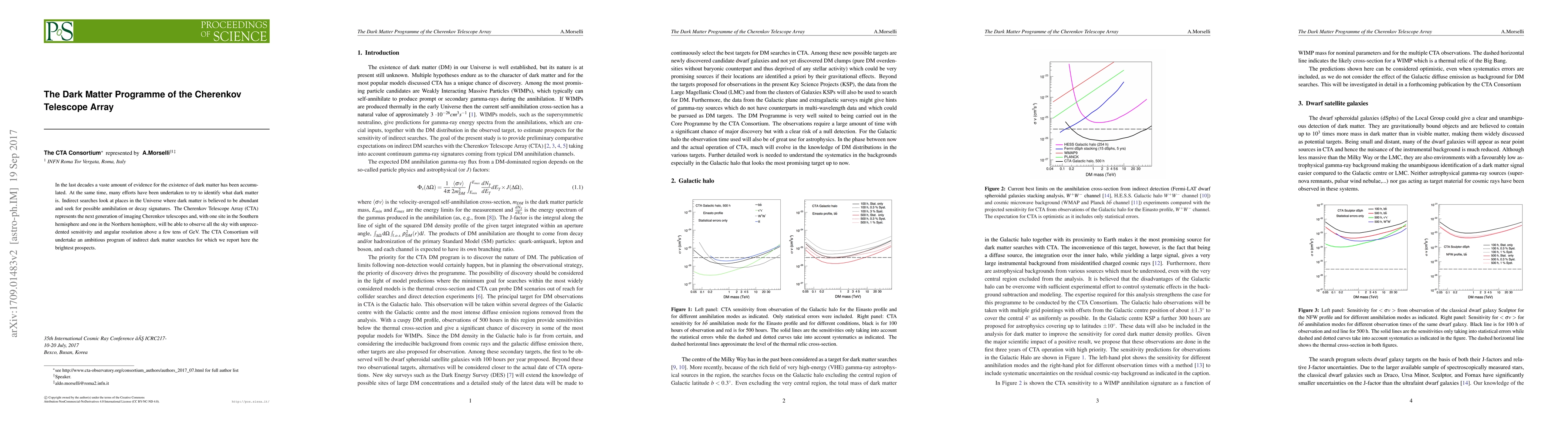 The Cherenkov Telescope Array (CTA) aims to detect indirect dark matter signatures through annihilation or decay in regions of the universe with high dark matter density, offering unprecedented sensitivity and resolution above tens of GeV. This ambitious program highlights the brightest prospects for dark matter detection.