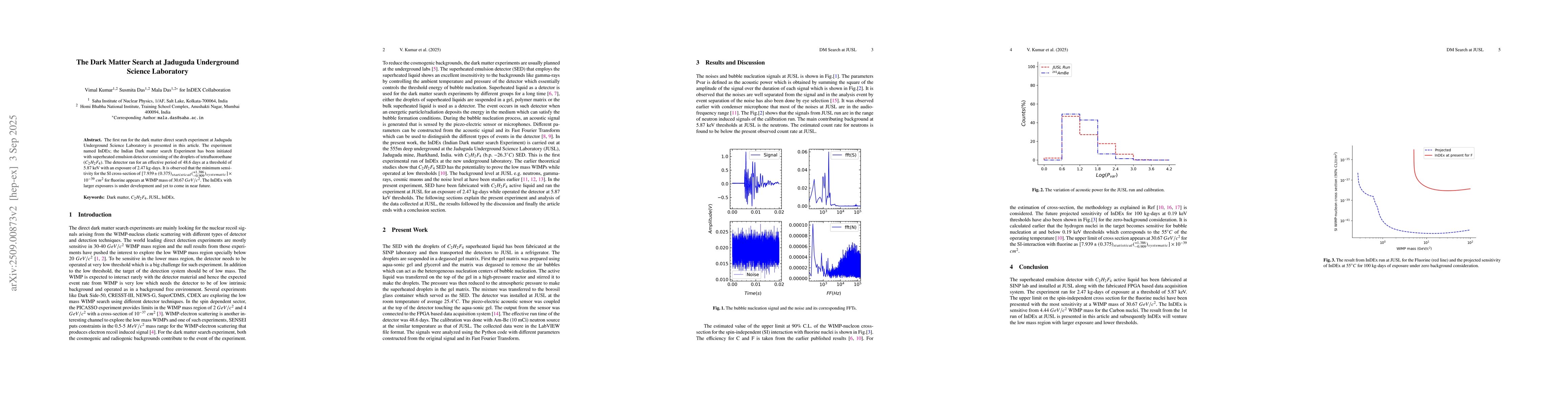 The first run for the dark matter direct search experiment at Jaduguda Underground Science Laboratory is presented in this article. The experiment named InDEx; the Indian Dark matter search Experiment has been initiated with superheated emulsion detector consisting of the droplets of tetrafluoroethane ($C_2H_2F_4$). The detector ran for an effective period of 48.6 days at a threshold of 5.87 keV with an exposure of 2.47 kg-days. It is observed that the minimum sensitivity for the SI cross-section of $[7.939\pm(0.375)_{statistical}(^{+1.386}_{-0.909})_{systematic}]\times 10^{-39}$ $cm^2$ for fluorine appears at WIMP mass of 30.67 $GeV/c^2$. The InDEx with larger exposures is under development and yet to come in near future.