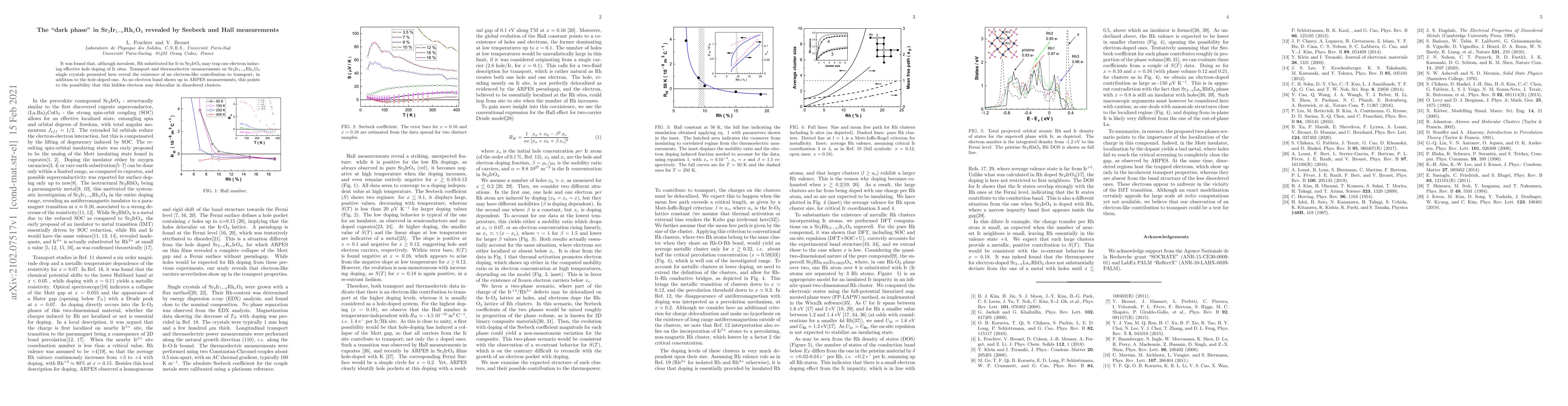 It was found that, although isovalent, Rh substituted for Ir in Sr$_2$IrO$_4$ may trap one electron inducing effective hole doping of Ir sites. Transport and thermoelectric measurements on Sr$_2$Ir$_{1-x}$Rh$_x$O$_4$ single crystals presented here reveal the existence of an electron-like contribution to transport, in addition to the hole-doped one. As no electron band shows up in ARPES measurements, this points to the possibility that this hidden electron may delocalize in disordered clusters.