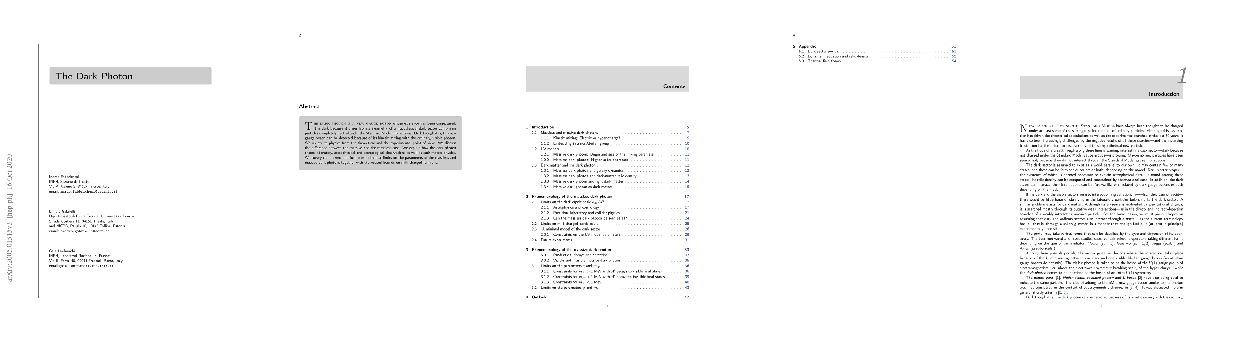 The dark photon is a hypothesized gauge boson from a dark sector, detectable through kinetic mixing with ordinary photons. This paper reviews its theoretical and experimental implications, including its role in various observations and constraints on its parameters.