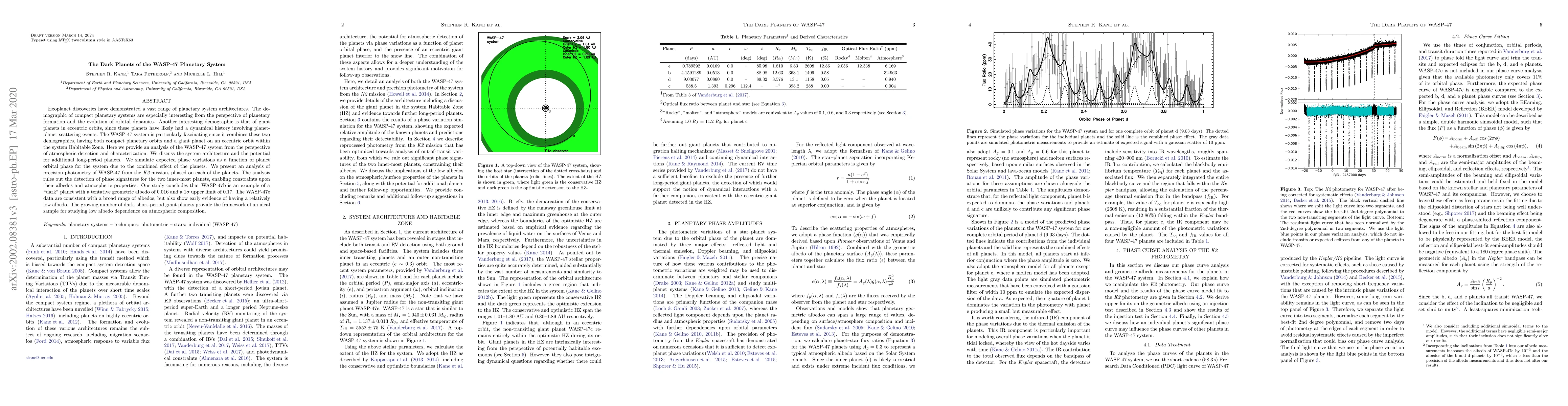 Exoplanet discoveries have demonstrated a vast range of planetary system architectures. The demographic of compact planetary systems are especially interesting from the perspective of planetary formation and the evolution of orbital dynamics. Another interesting demographic is that of giant planets in eccentric orbits, since these planets have likely had a dynamical history involving planet-planet scattering events. The WASP-47 system is particularly fascinating since it combines these two demographics, having both compact planetary orbits and a giant planet on an eccentric orbit within the system Habitable Zone. Here we provide an analysis of the WASP-47 system from the perspective of atmospheric detection and characterization. We discuss the system architecture and the potential for additional long-period planets. We simulate expected phase variations as a function of planet orbital phase for the system due to the combined effect of the planets. We present analysis of precision photometry of WASP-47 from the K2 mission, phased on each of the planets. The analysis rules out the detection of phase signatures for the two inner-most planets, enabling constraints upon their albedos and atmospheric properties. Our study concludes that WASP-47b is an example of a "dark" planet with a tentative geometric albedo of 0.016 and a 1$\sigma$ upper limit of 0.17. The WASP-47e data are consistent with a broad range of albedos, but also show early evidence of having a relatively low albedo. The growing number of dark, short-period giant planets provide the framework of an ideal sample for studying low albedo dependence on atmospheric composition.