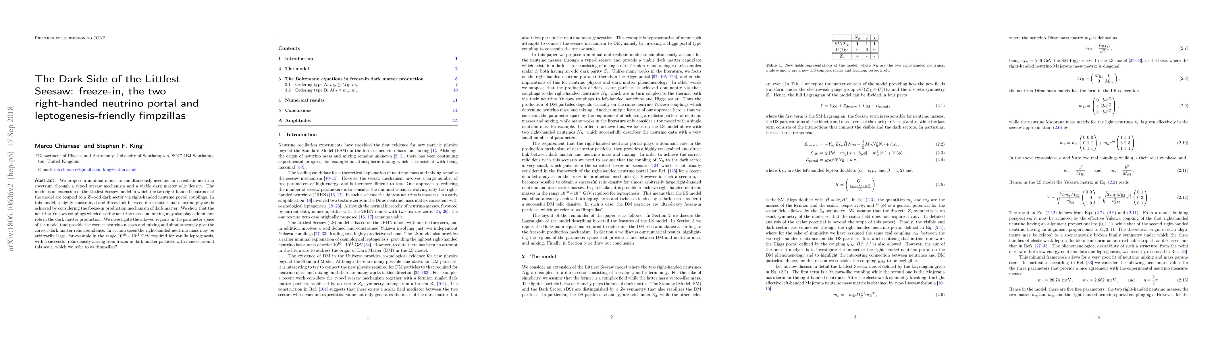 We propose a minimal model to simultaneously account for a realistic neutrino spectrum through a type-I seesaw mechanism and a viable dark matter relic density. The model is an extension of the Littlest Seesaw model in which the two right-handed neutrinos of the model are coupled to a $Z_2$-odd dark sector via right-handed neutrino portal couplings. In this model, a highly constrained and direct link between dark matter and neutrino physics is achieved by considering the freeze-in production mechanism of dark matter. We show that the neutrino Yukawa couplings which describe neutrino mass and mixing may also play a dominant role in the dark matter production. We investigate the allowed regions in the parameter space of the model that provide the correct neutrino masses and mixing and simultaneously give the correct dark matter relic abundance. In certain cases the right-handed neutrino mass may be arbitrarily large, for example in the range $10^{10}-10^{11}$ GeV required for vanilla leptogenesis, with a successful relic density arising from frozen-in dark matter particles with masses around this scale, which we refer to as "fimpzillas".