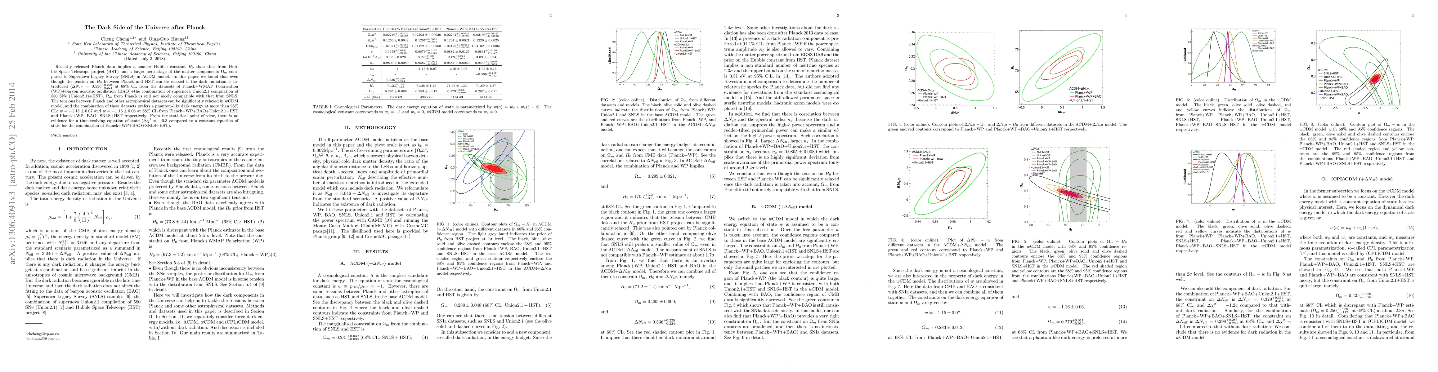Recently released Planck data implies a smaller Hubble constant $H_0$ than that from Hubble Space Telescope project (HST) and a larger percentage of the matter components $\Omega_m$ compared to Supernova Legacy Survey (SNLS) in $\Lambda$CDM model. In this paper we found that even though the tension on $H_0$ between Planck and HST can be relaxed if the dark radiation is introduced ($\Delta N_{\rm eff}=0.536_{-0.224}^{+0.229}$ at $68\%$ CL from the datasets of Planck+WMAP Polarization (WP)+baryon acoustic oscillation (BAO)+the combination of supernova Union2.1 compilation of 580 SNe (Union2.1)+HST), $\Omega_m$ from Planck is still not nicely compatible with that from SNLS. The tensions between Planck and other astrophysical datasets can be significantly relaxed in $w$CDM model, and the combination of these datasets prefers a phantom-like dark energy at more than $95\%$ CL: $w=-1.15\pm 0.07$ and $w=-1.16\pm 0.06$ at $68\%$ CL from Planck+WP+BAO+Union2.1+HST and Planck+WP+BAO+SNLS+HST respectively. From the statistical point of view, there is no evidence for a time-evolving equation of state ($\Delta \chi^2=-0.3$ compared to a constant equation of state for the combination of Planck+WP+BAO+SNLS+HST).