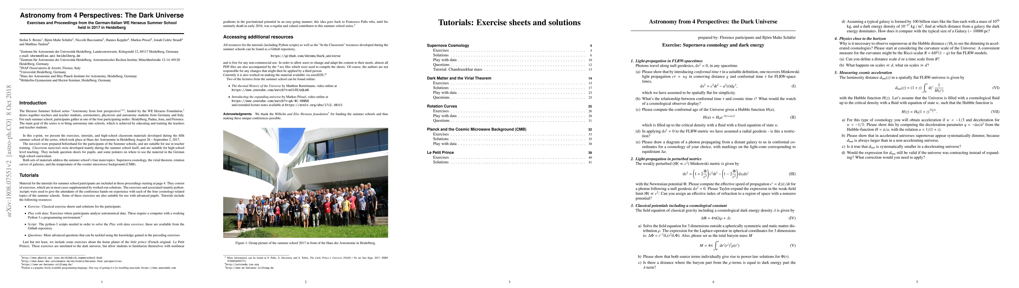 This paper summarizes exercises, tutorials, and classroom materials developed for the fifth German-Italian WE Heraeus Summer School in Heidelberg, focusing on astronomy education for teachers and high-school students. The materials cover topics like supernova cosmology and the cosmic microwave background.