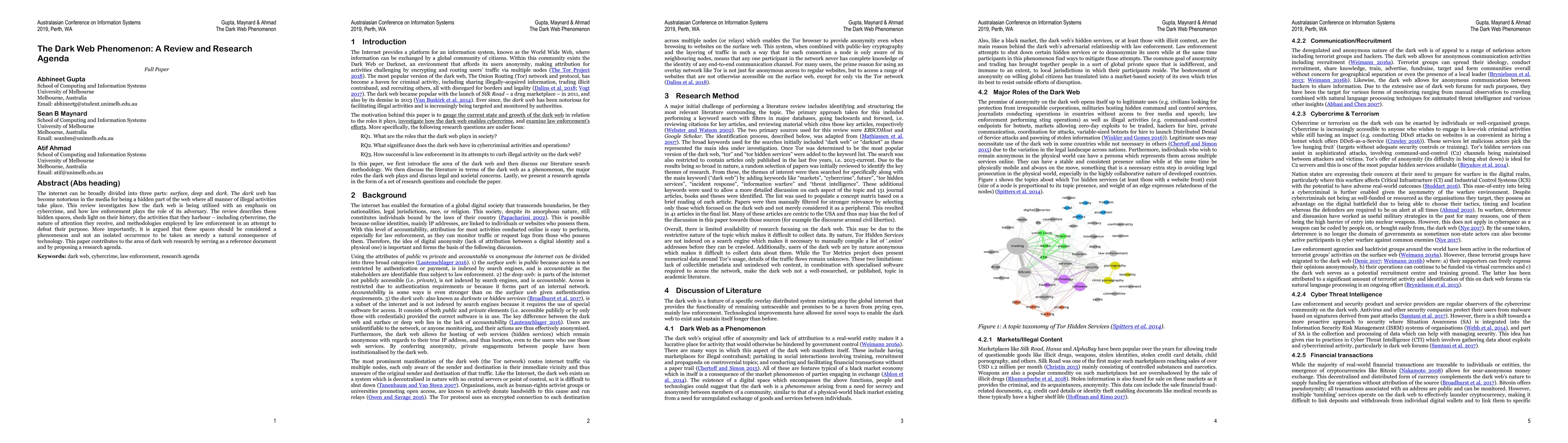 The dark web is a hidden part of the internet where various illegal activities take place, including cybercrime. This review aims to shed light on its history, activities, and law enforcement methods, contributing to a research agenda and providing a reference document for future studies.